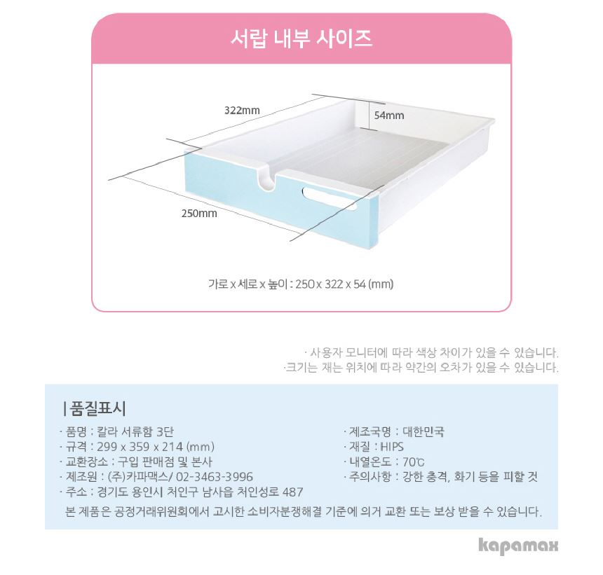품명 칼라 서류함 3단