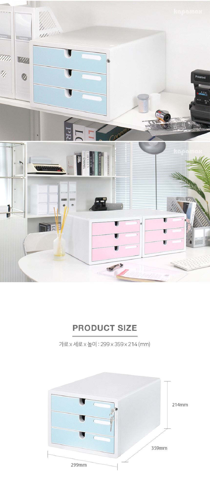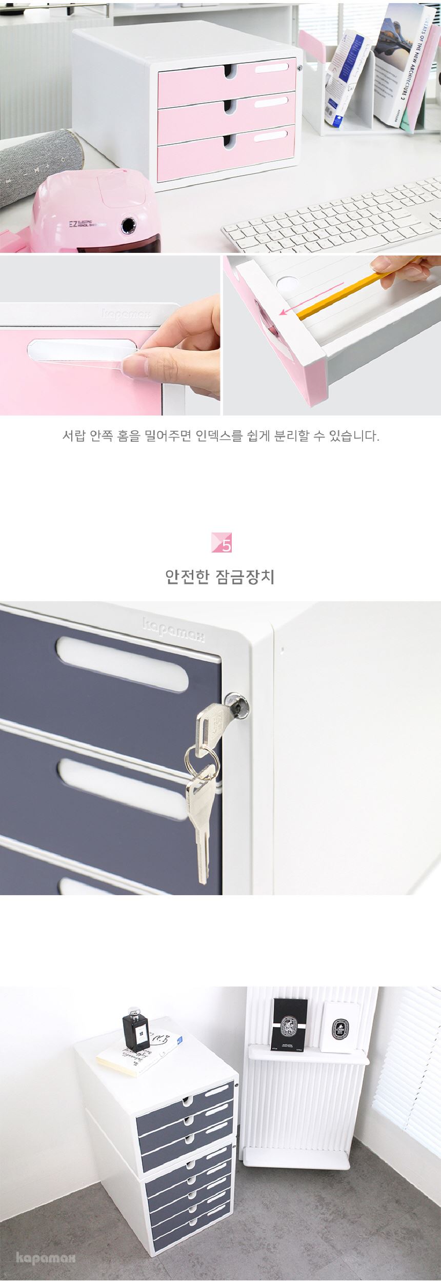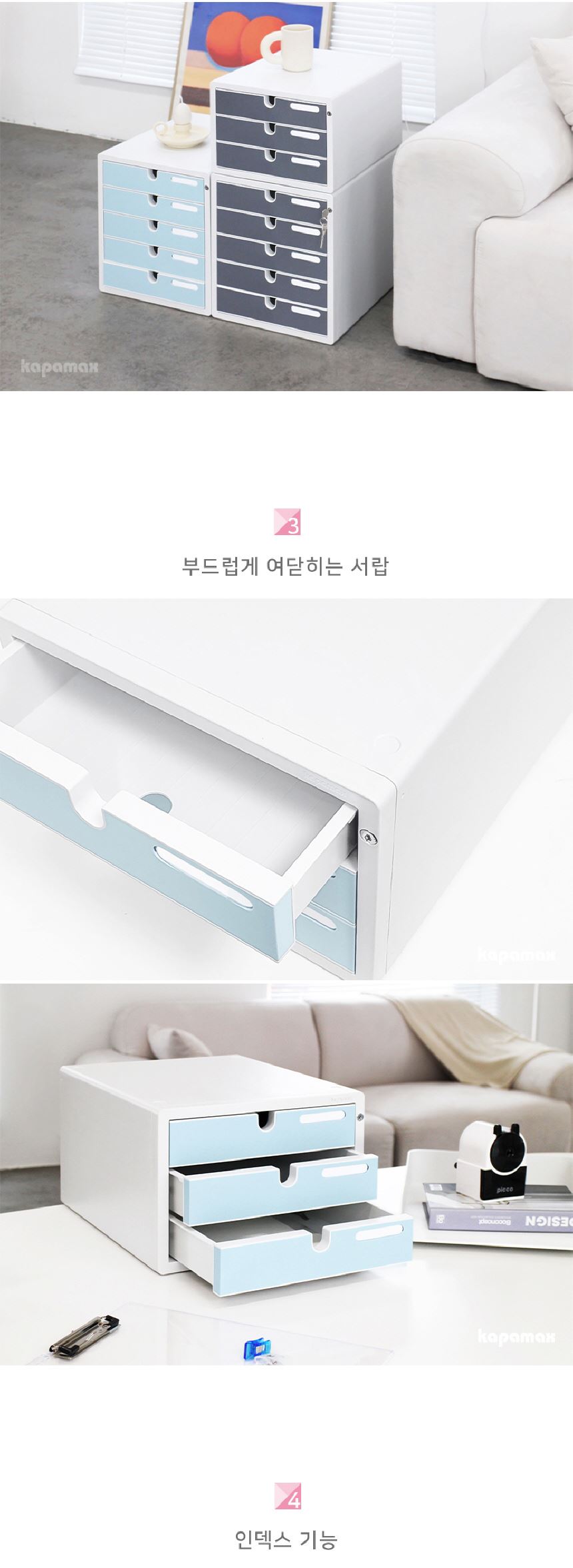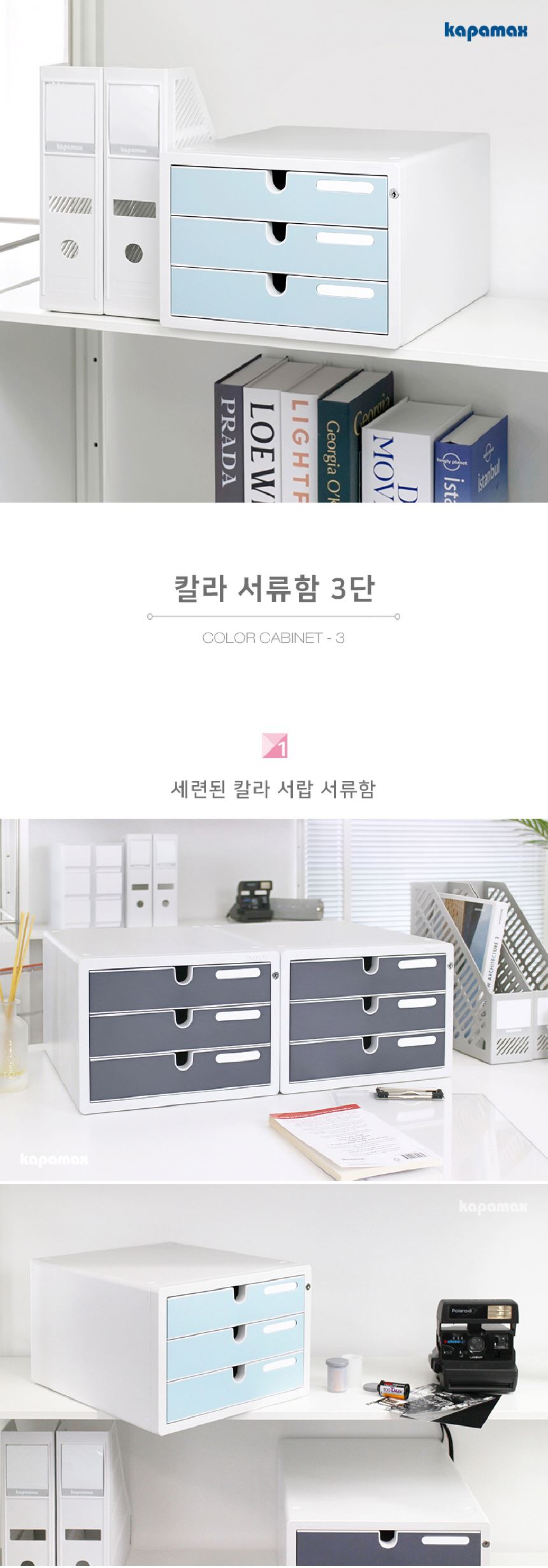 • 카파맥스 A4 서류정리함 잠금장치 칼라 서류함 3단