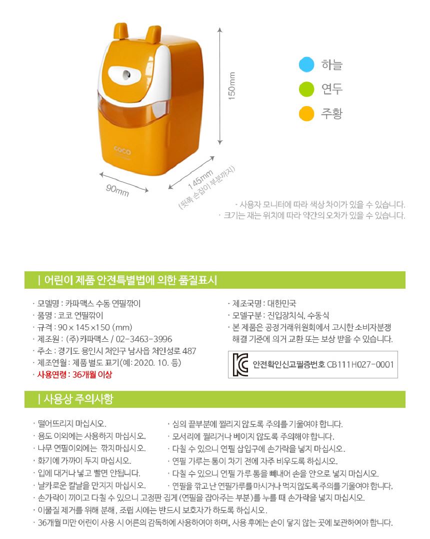 카파맥스 수동 코코 연필깎이 / 설래임 / 디비디비 / 구매하기 / 특가할인