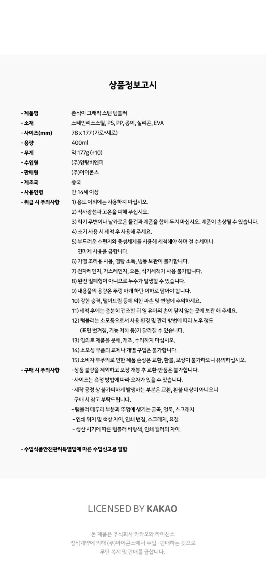 • 카카오프렌즈 춘식이 그래픽 스텐 텀블러 400ml