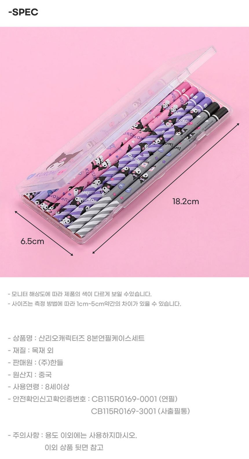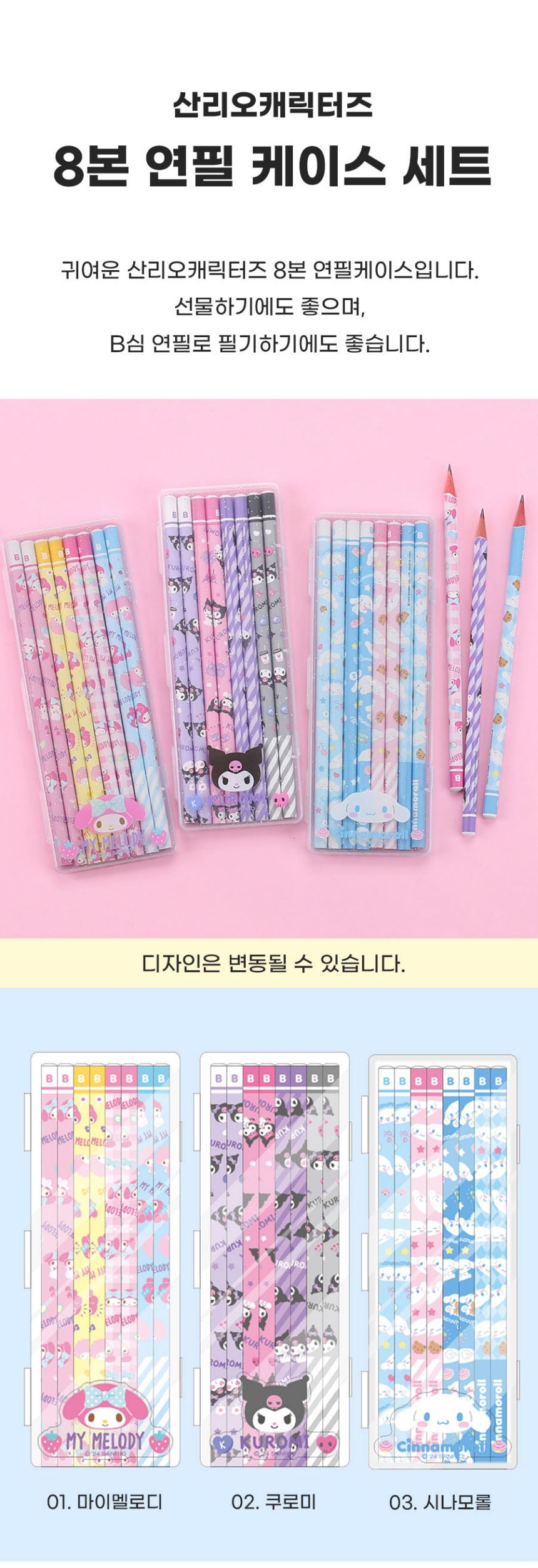 산리오캐릭터즈 사출필통 케이스 연필세트 B 8본