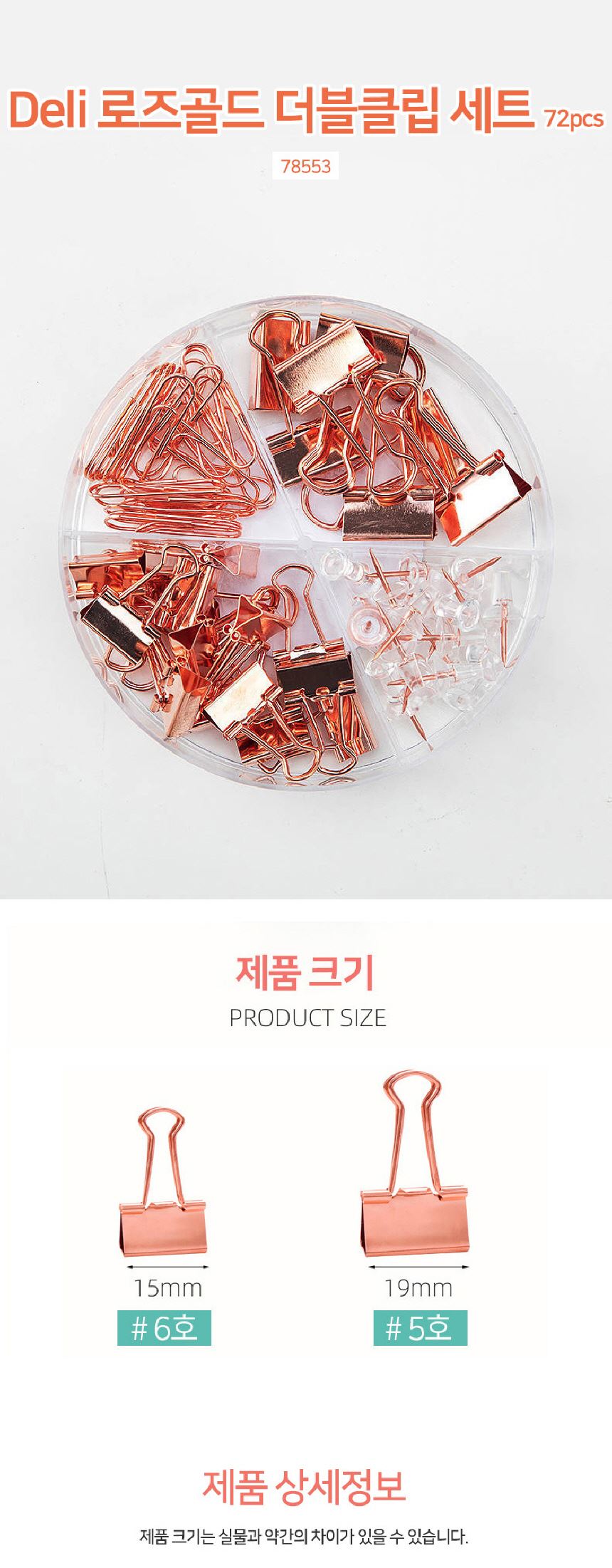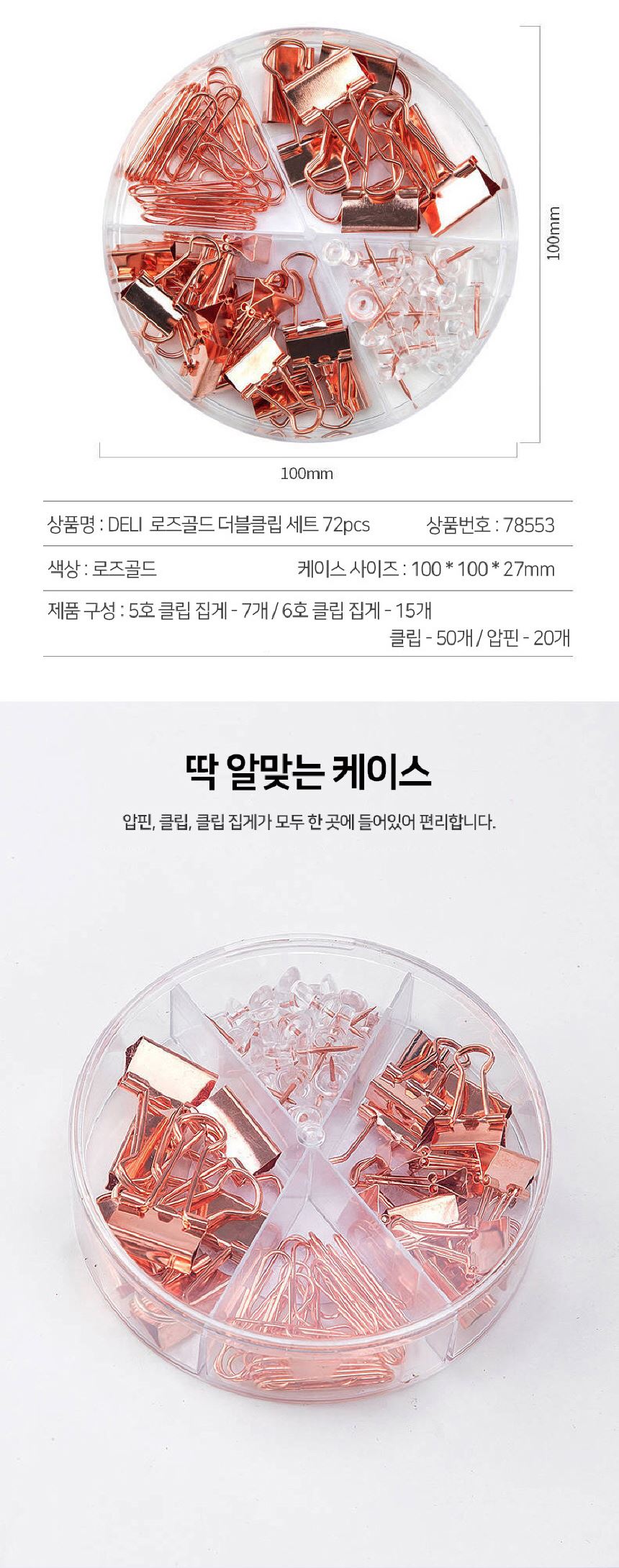 • 델리 로즈골드 장구압핀 더블클립 세트 72PCS