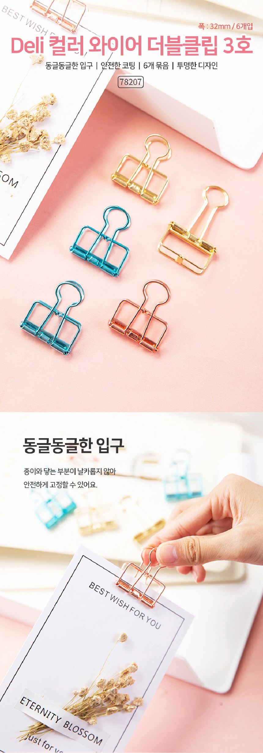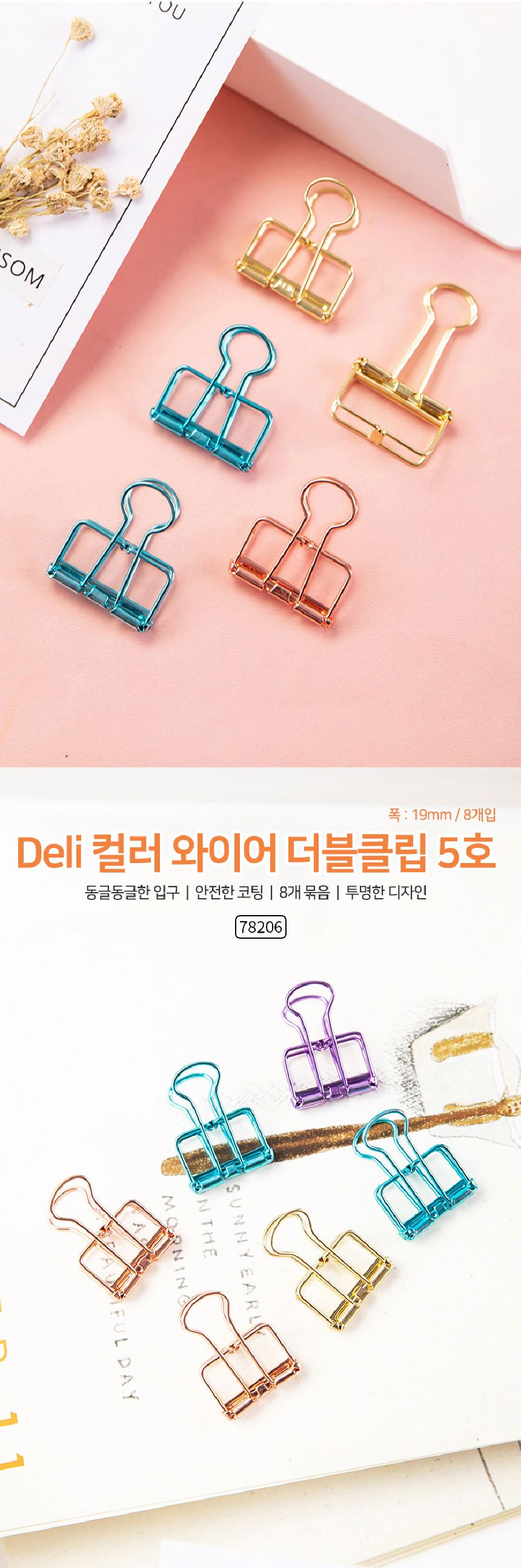 델리 사무용 학용 와이어 더블 클립 혼합색상