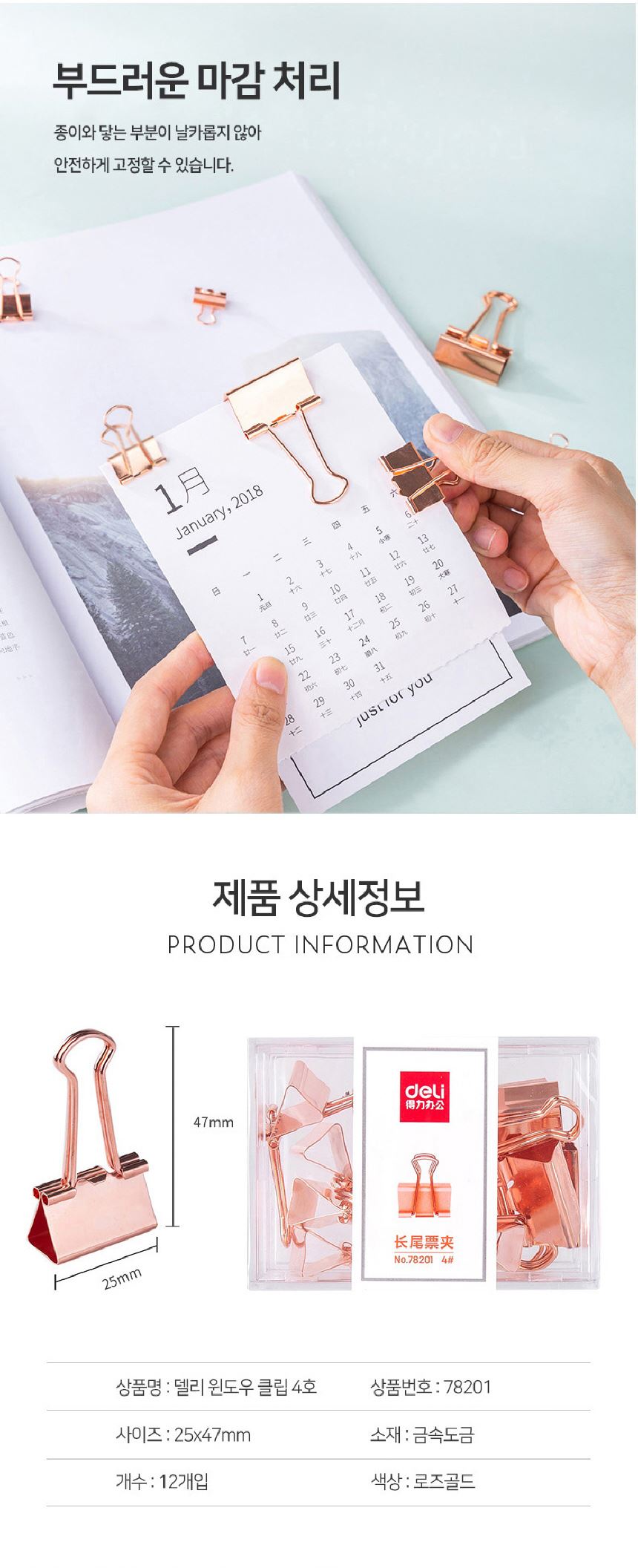 • 델리 사무용 학용 윈도우클립 로즈골드
