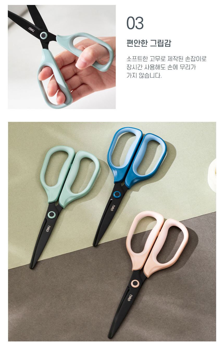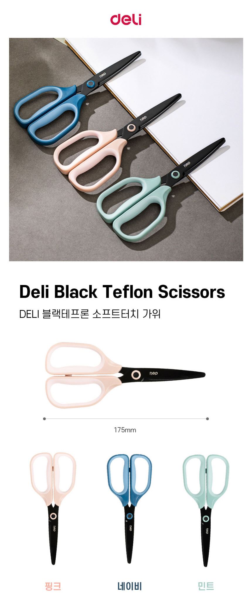 • 델리 사무용 학용 블랙 테프론 소프트터치 가위 랜덤색상