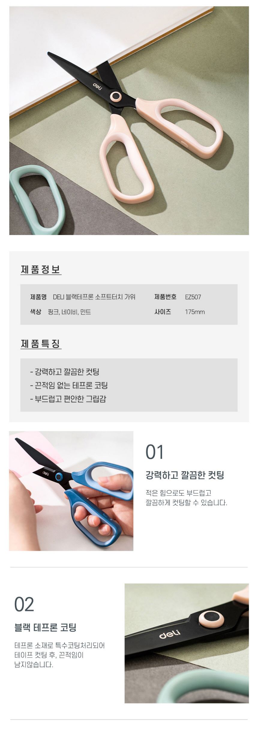 델리 사무용 학용 블랙 테프론 소프트터치 가위 랜덤색상 / 설래임 / 디비디비 / 구매하기 / 특가할인