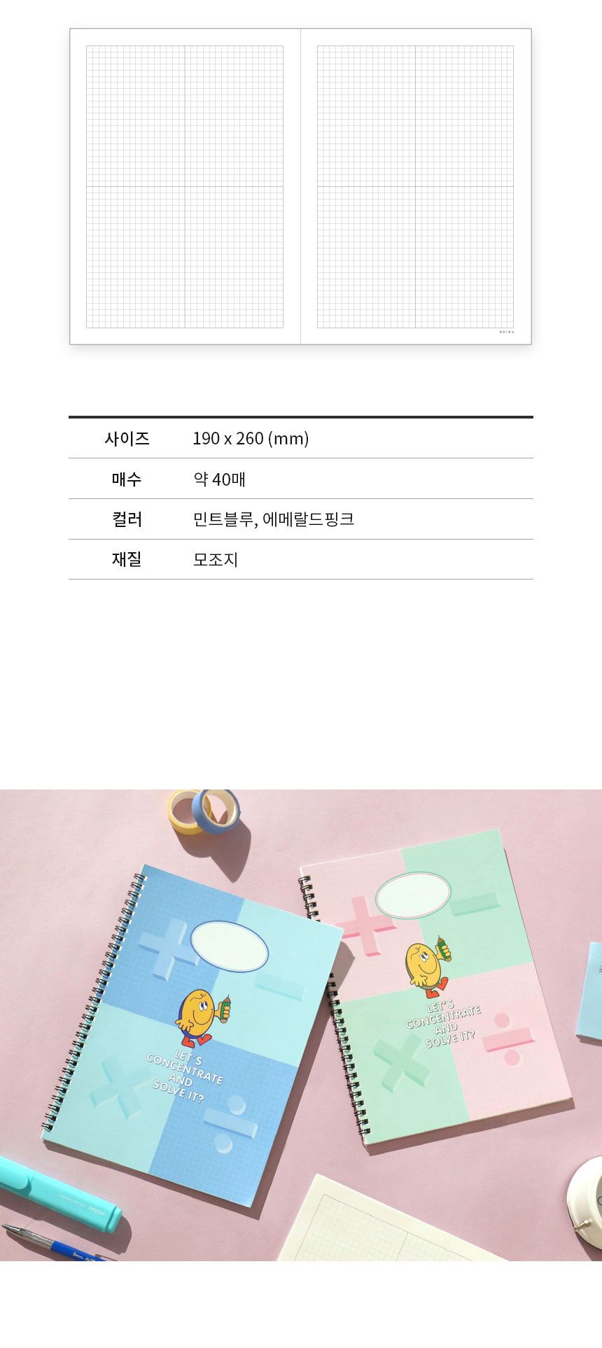 품명 스마일 4분할 모눈 수학노트