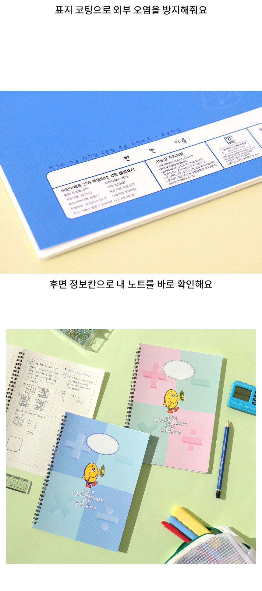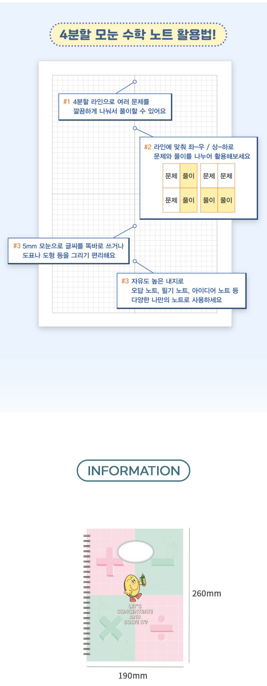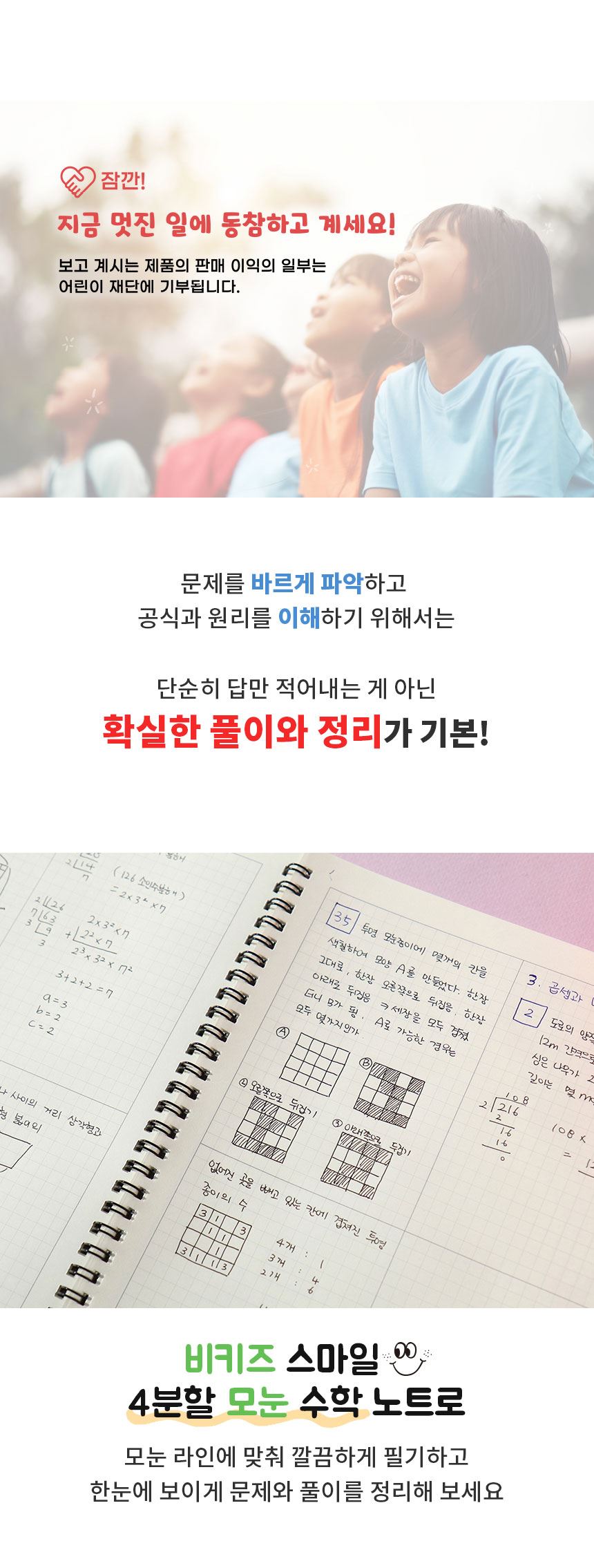 비키즈 초등노트 오답 필기정리 그리드 스마일 4분할 모눈 수학노트