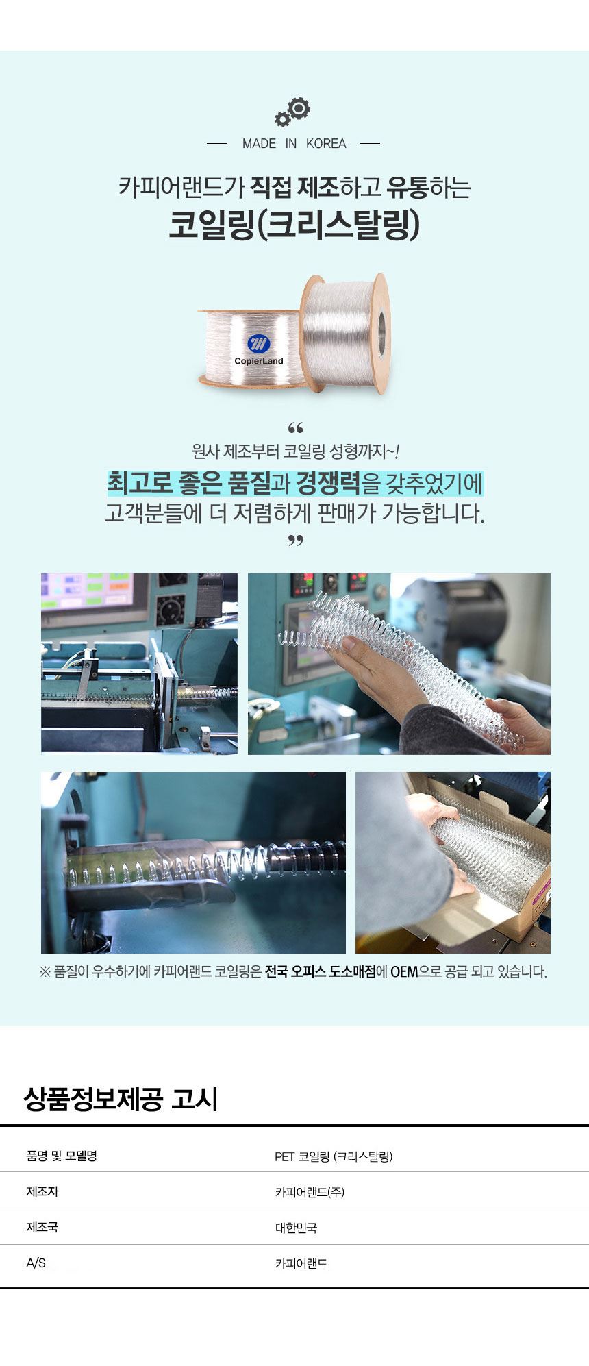 • 카피어랜드 3:1 크리스탈 투명 제본링 PET 코일링 1kg