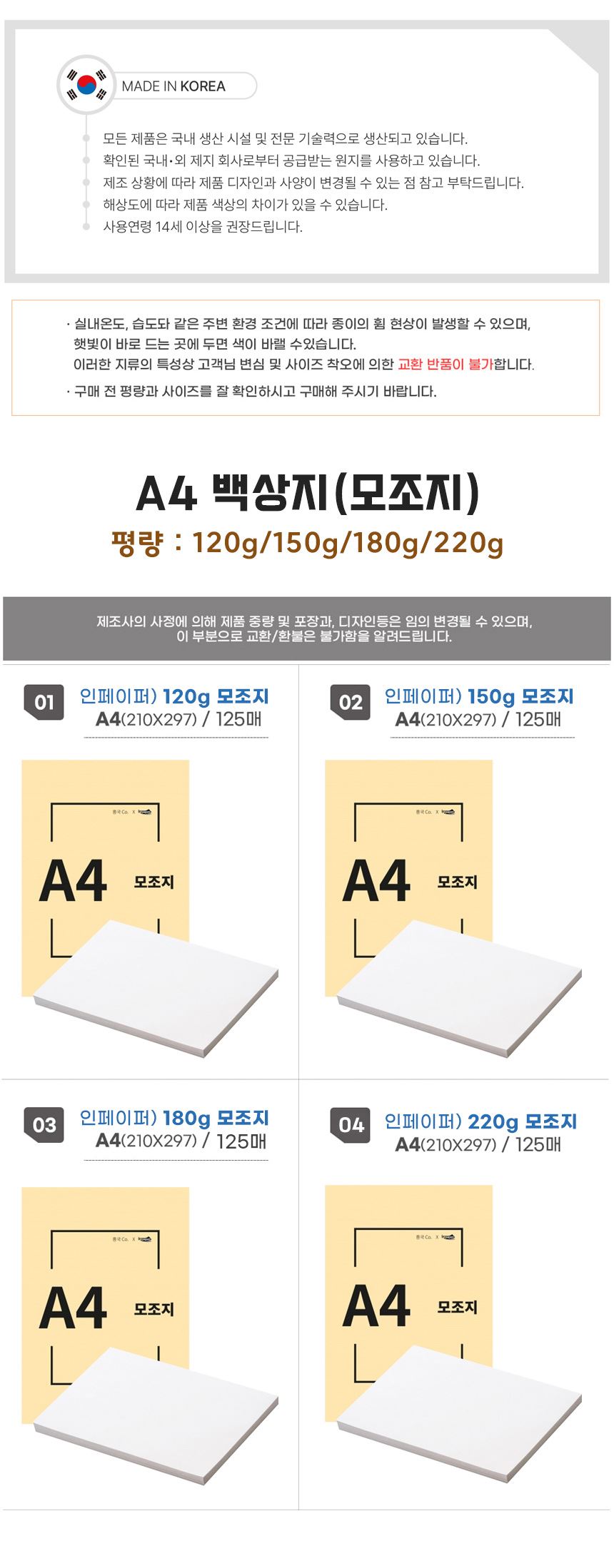• 인페이퍼 백상지 인쇄지 모조지 A4