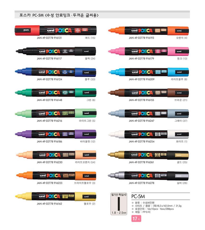 유니 중간촉 데코용 수성 마카펜 포스카 PC-5M / 설래임 / 디비디비 / 구매하기 / 특가할인