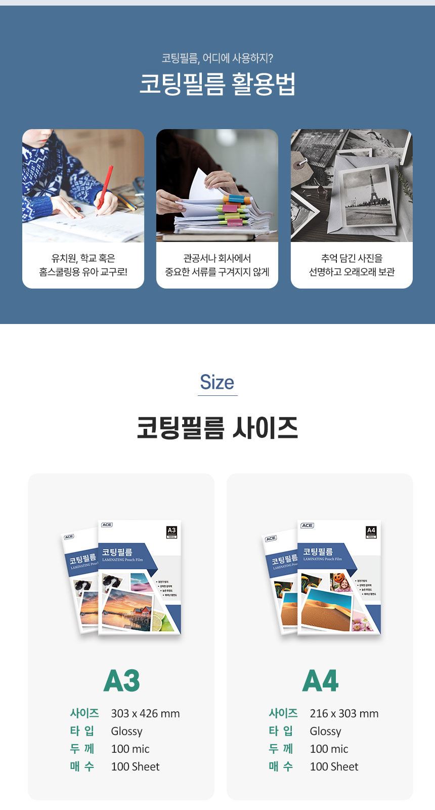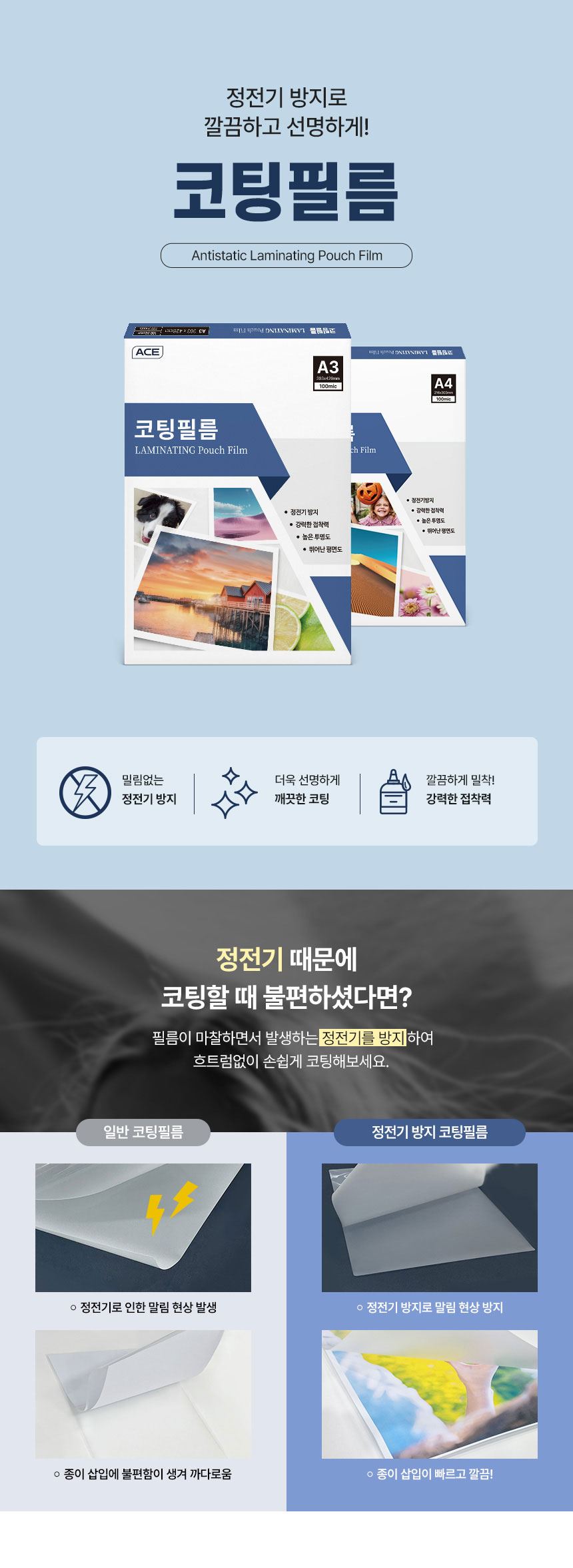 • 에이스 정전기방지 고품질 기계 코팅지 100mic 코팅필름 100매