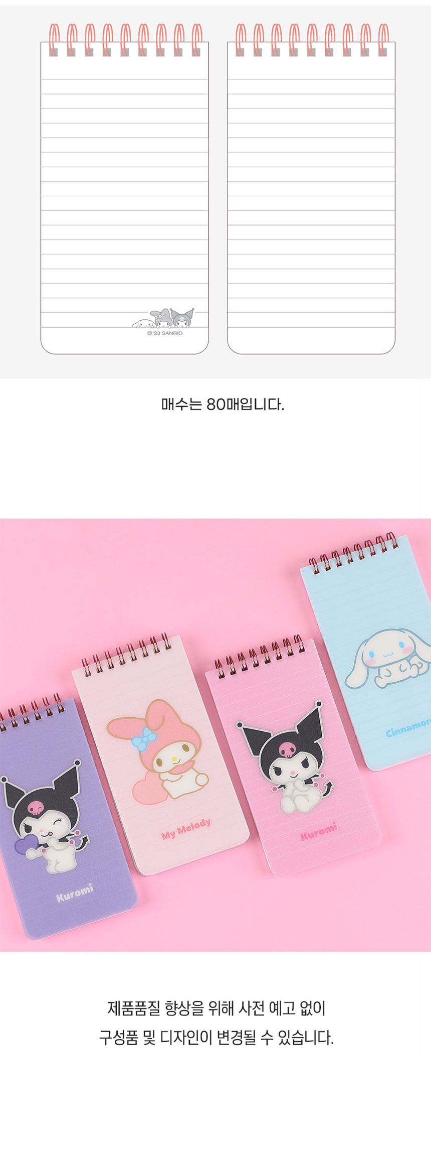• 산리오캐릭터즈 7mm PP 상철수첩