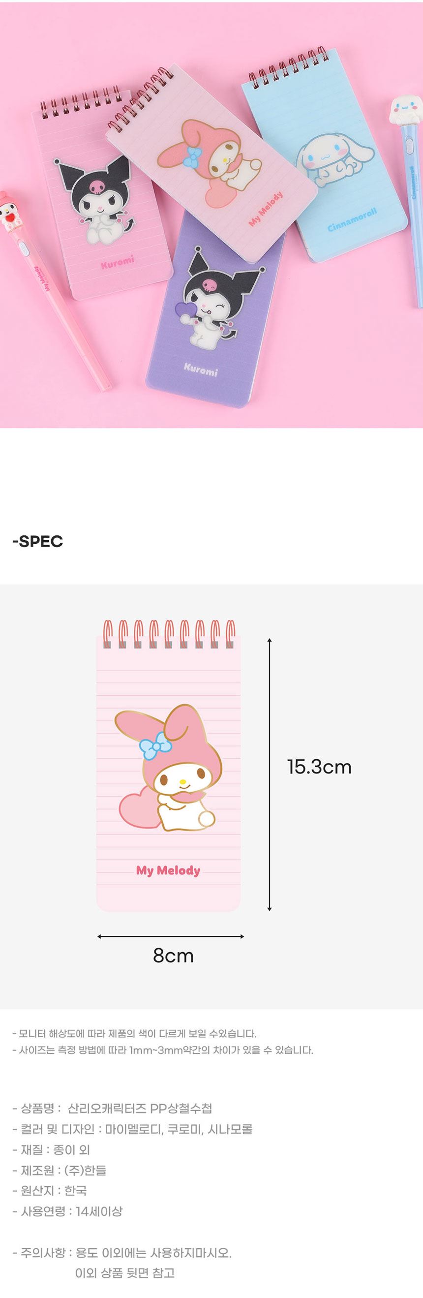 품명 산리오 PP 상철수첩