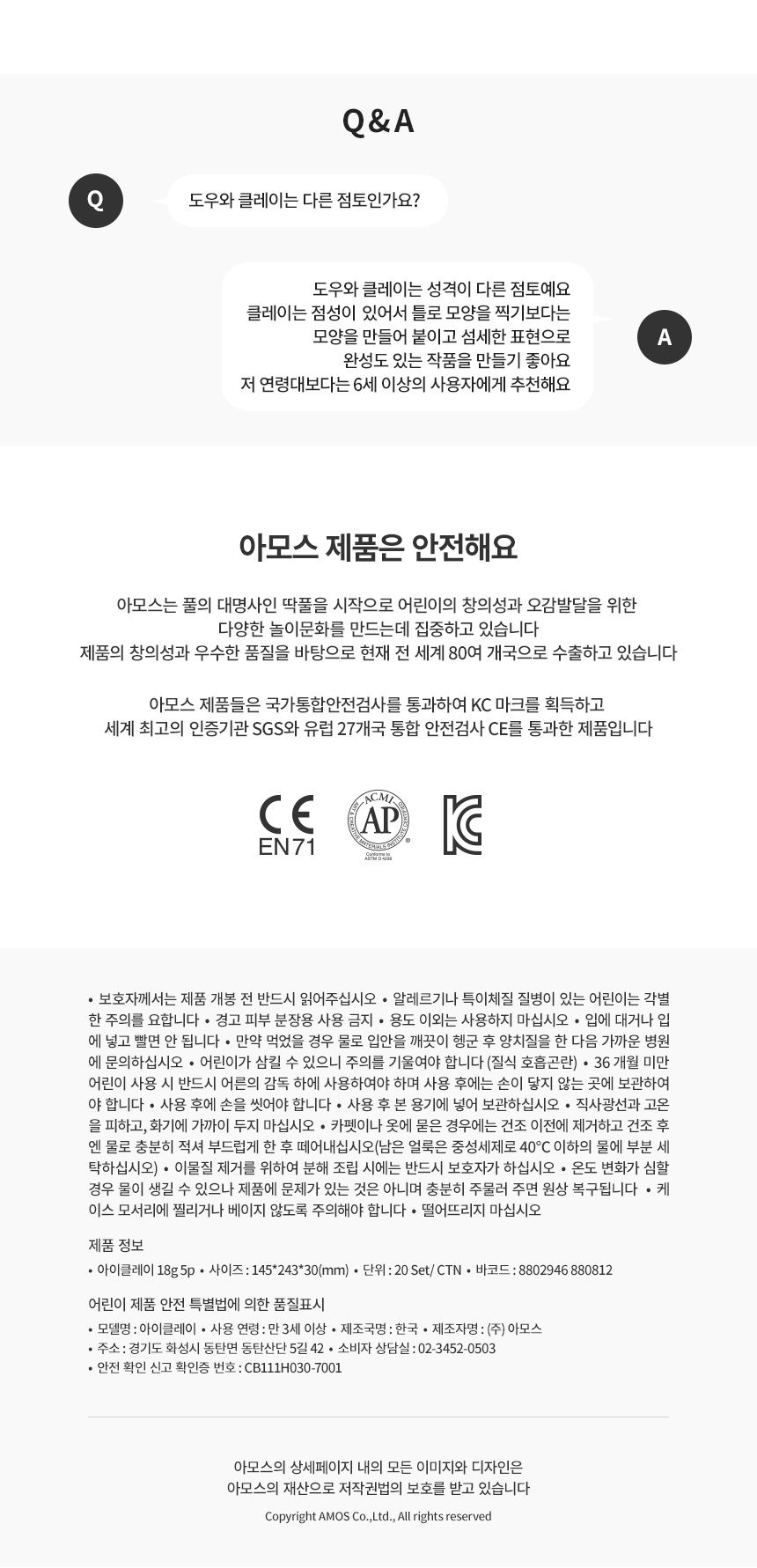 아모스 학습교재 아이클레이 18g 5색 / 설래임 / 디비디비 / 구매하기 / 특가할인