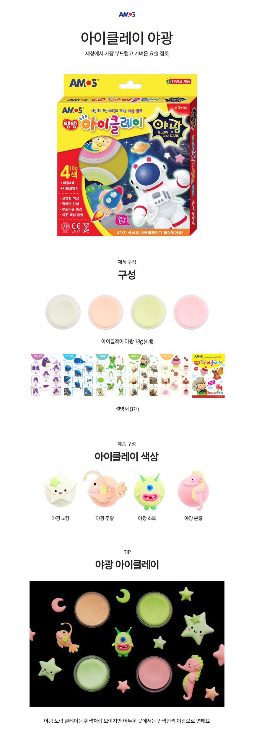 아모스 학습교재 아이클레이 야광 18g 4색 / 설래임 / 디비디비 / 구매하기 / 특가할인