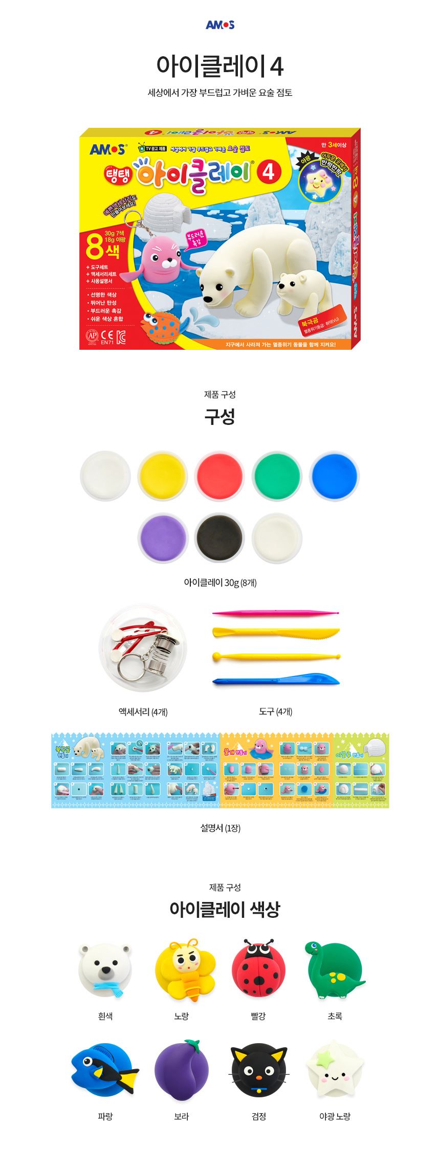 아모스 칼라점토 탱탱 아이클레이 8색세트 4번