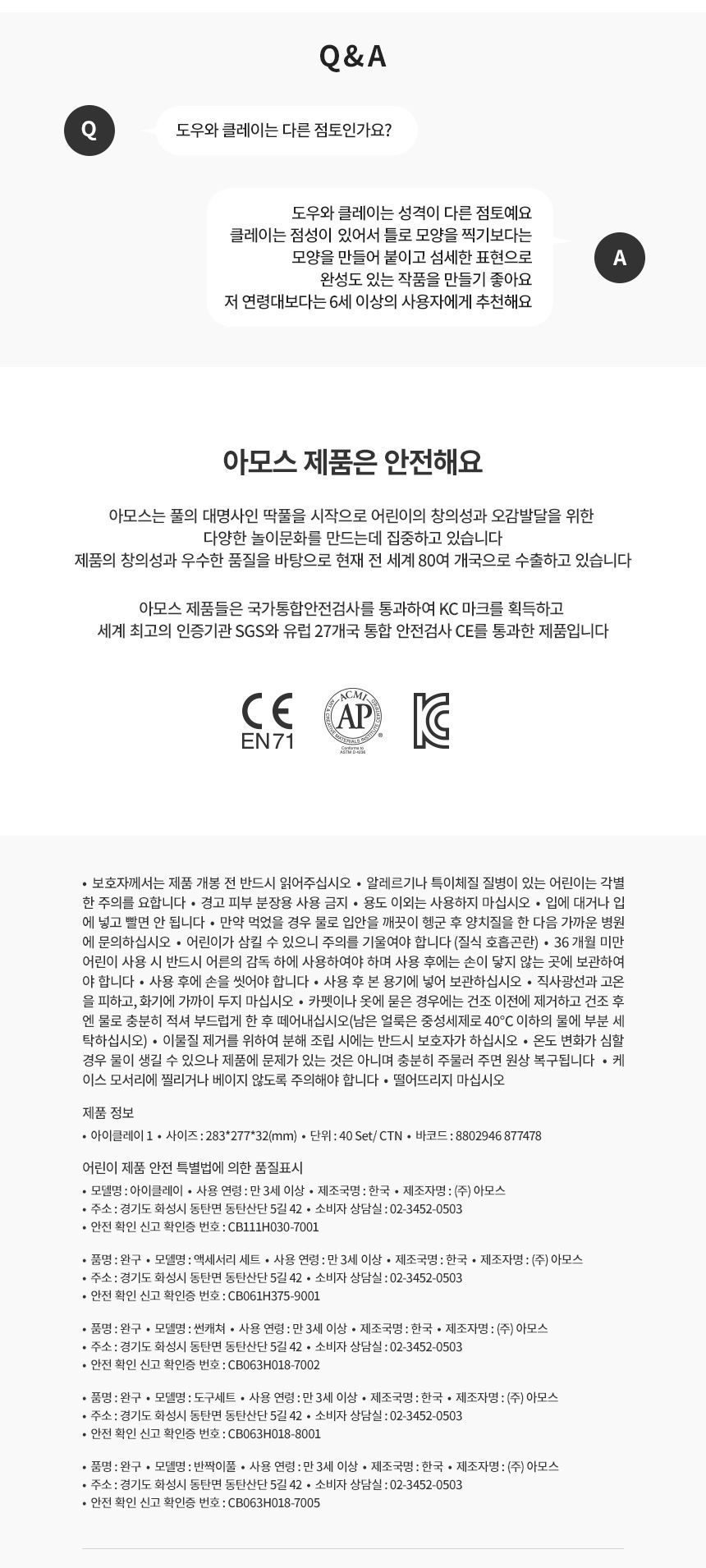 • 아모스 칼라점토 탱탱 아이클레이 18g 6색세트 1번