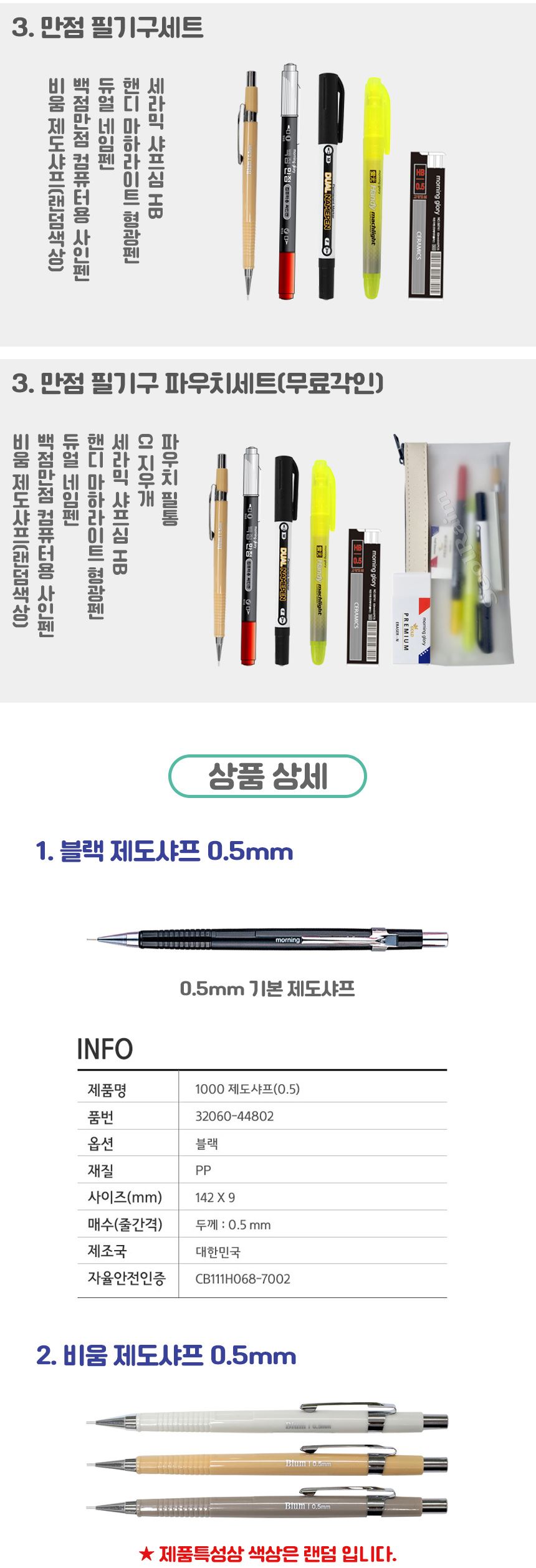 • 무료각인 모닝글로리 학생선물 필기구 샤프 샤프심 만점 파우치세트