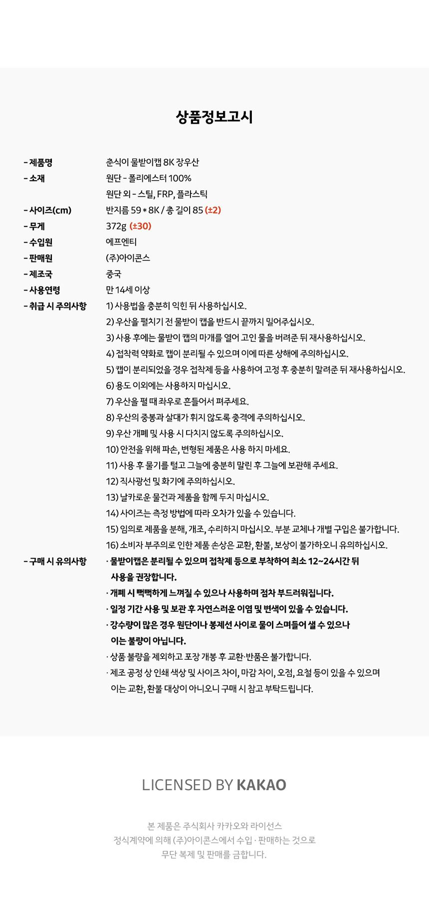 품명 춘식이 물받이캡 8K 장우산