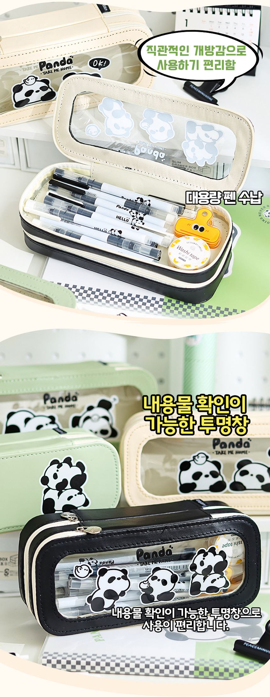 • 대용량 귀여운 팬더 필통 판다 투명창 2단 파우치 블랙