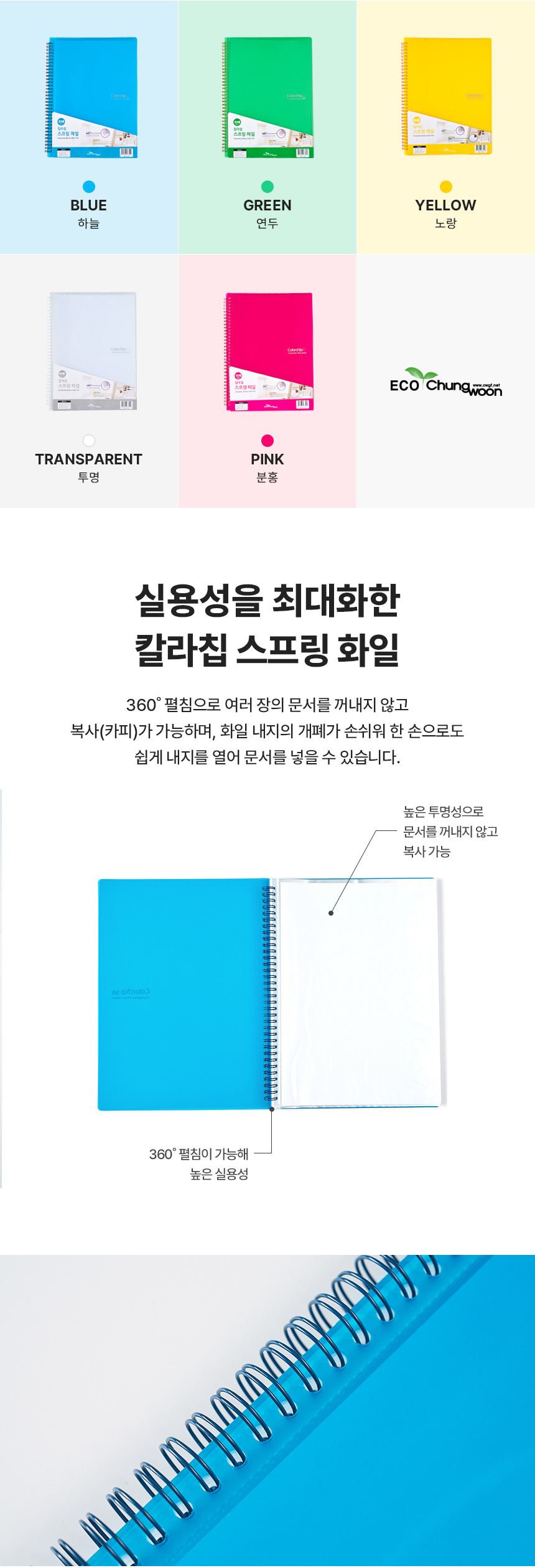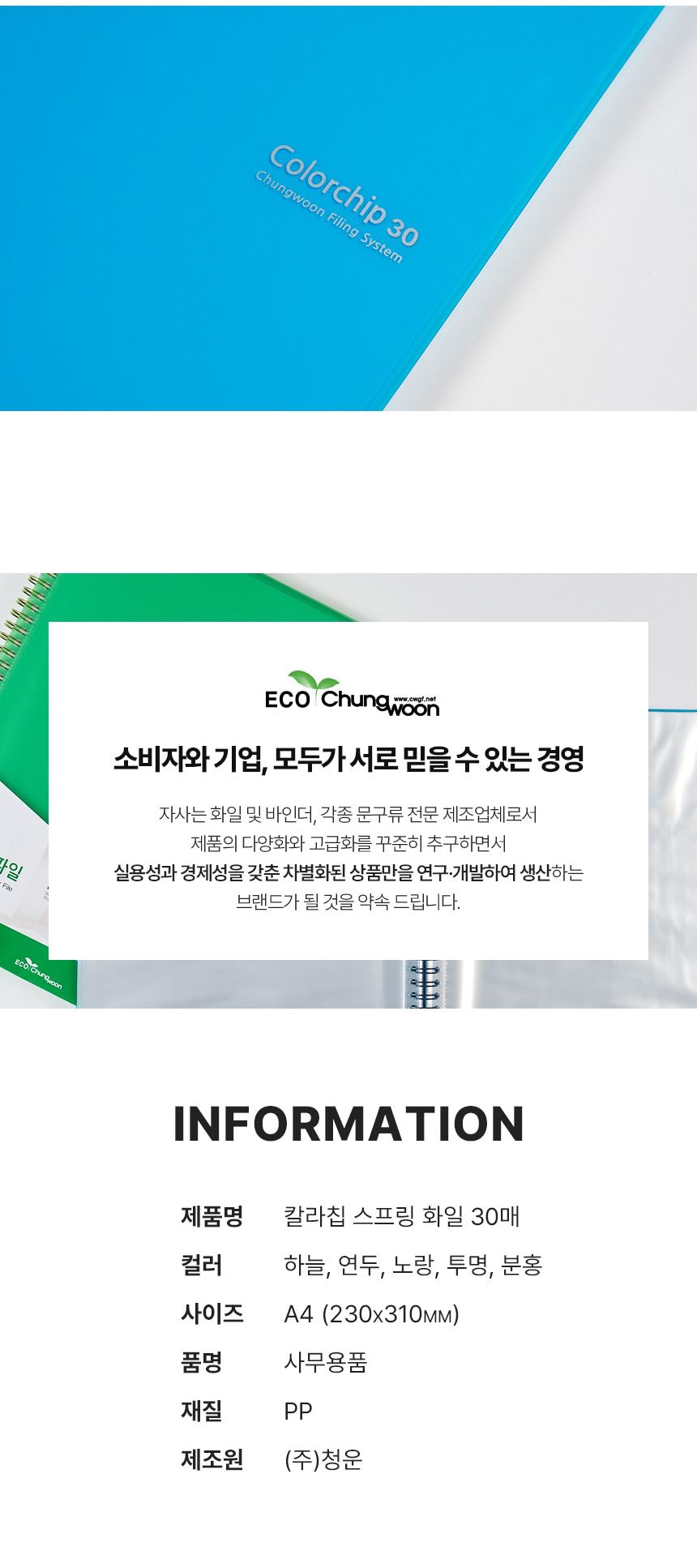 에코청운 A4 칼라칩 스프링 화일 30P / 설래임 / 디비디비 / 구매하기 / 특가할인