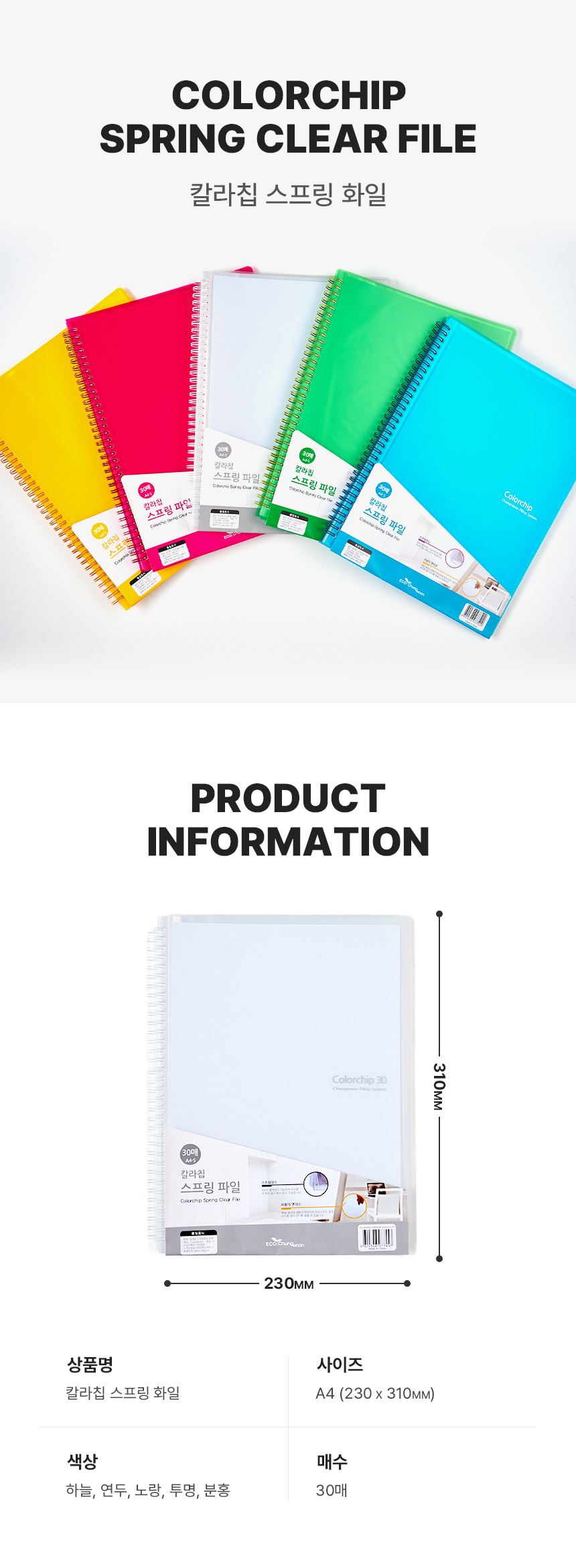 품명 칼라칩 스프링 화일 30P