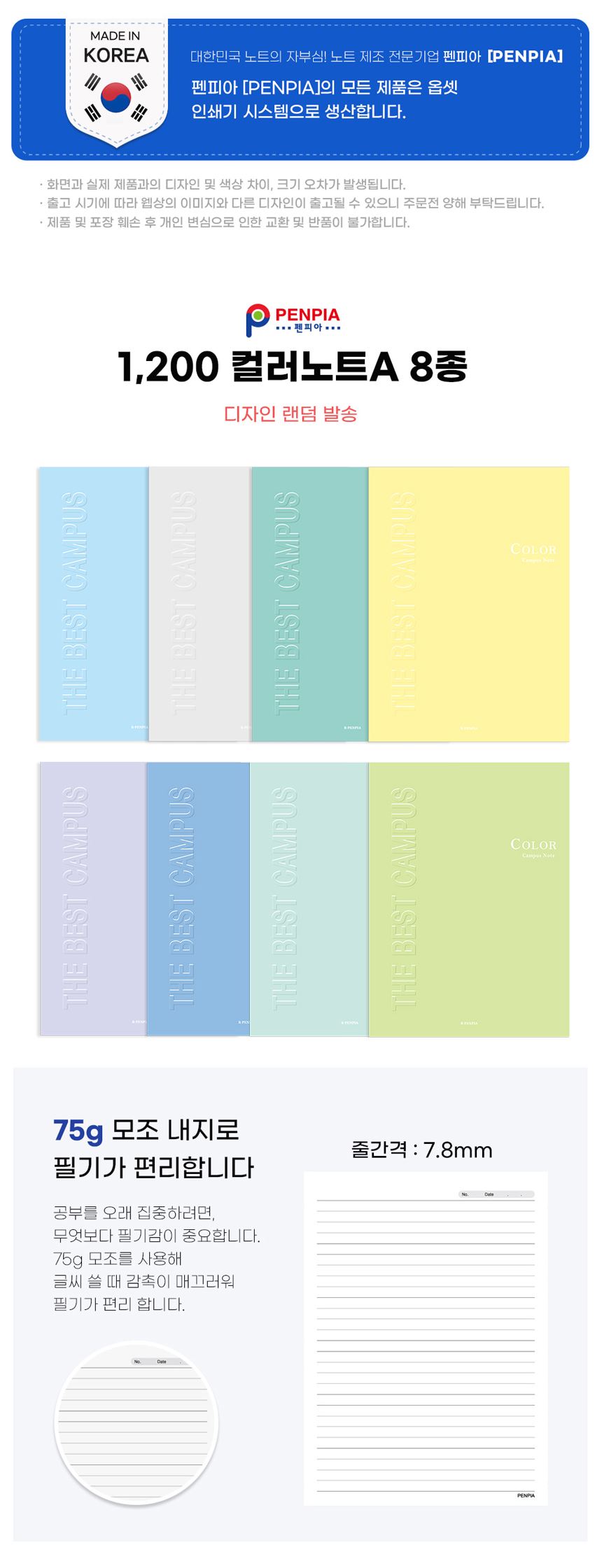 펜피아 중고생 무제노트 1200 컬러노트A 랜덤1팩(10권)