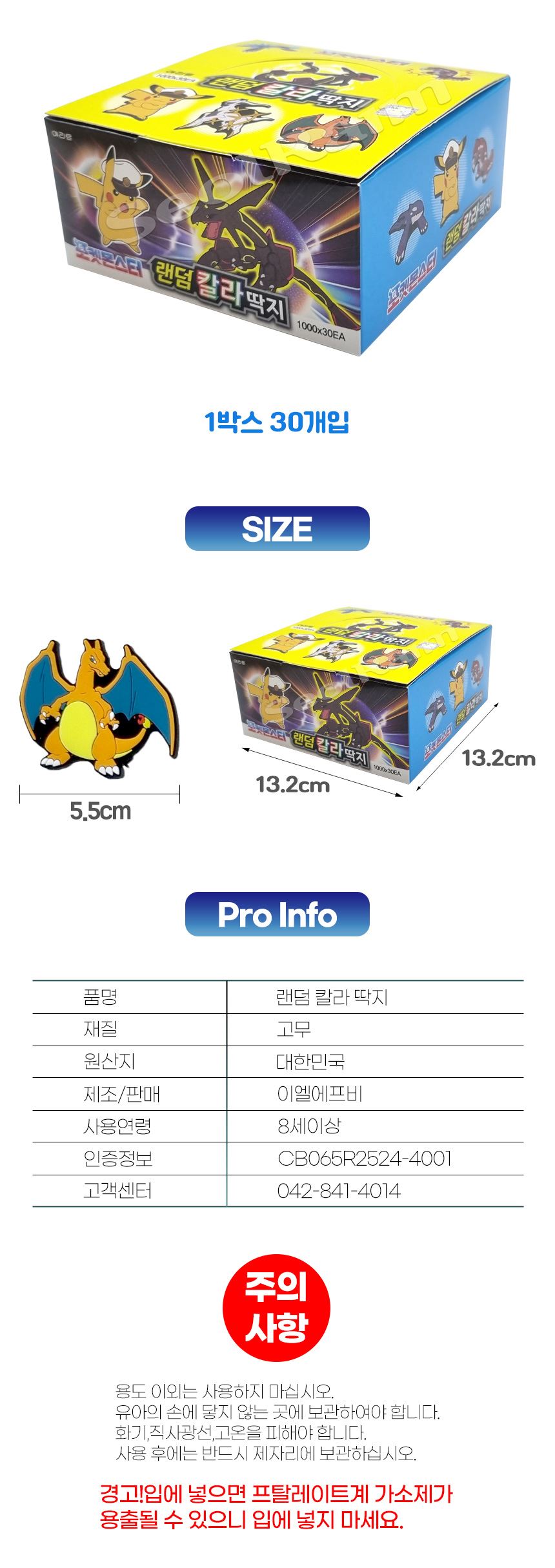 포켓몬스터 고무딱지 랜덤 칼라딱지 1갑(30개)
