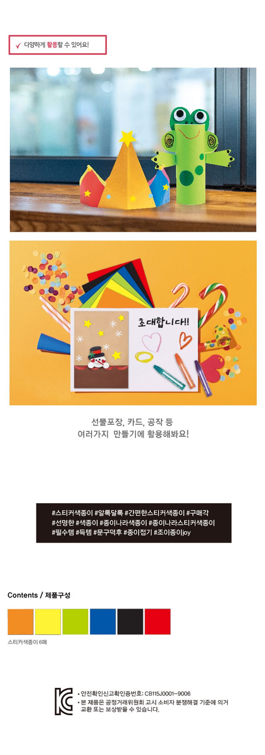 • 종이나라 내 마음대로 스티커 색종이 6색 6매 1갑(20팩)