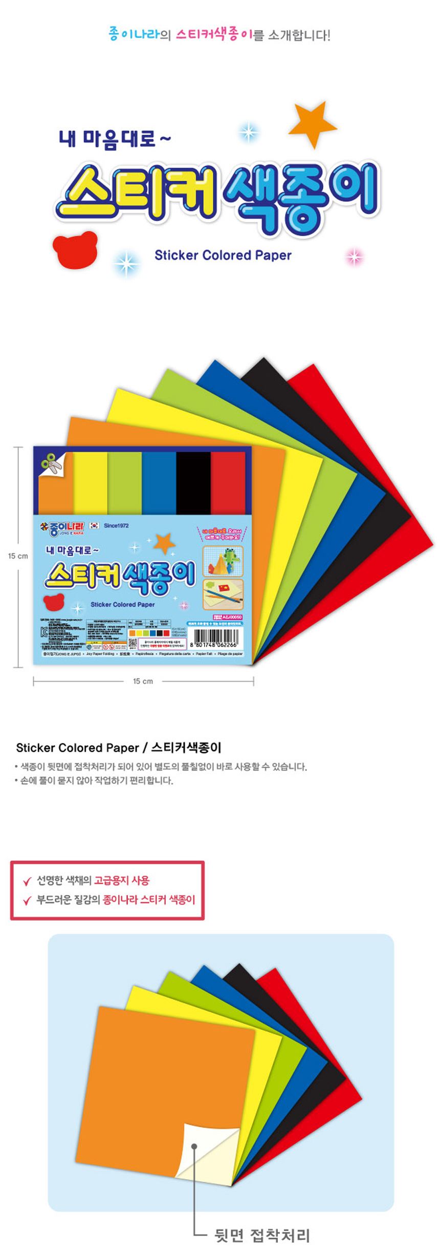종이나라 내 마음대로 스티커 색종이 6색 6매 1갑(20팩)