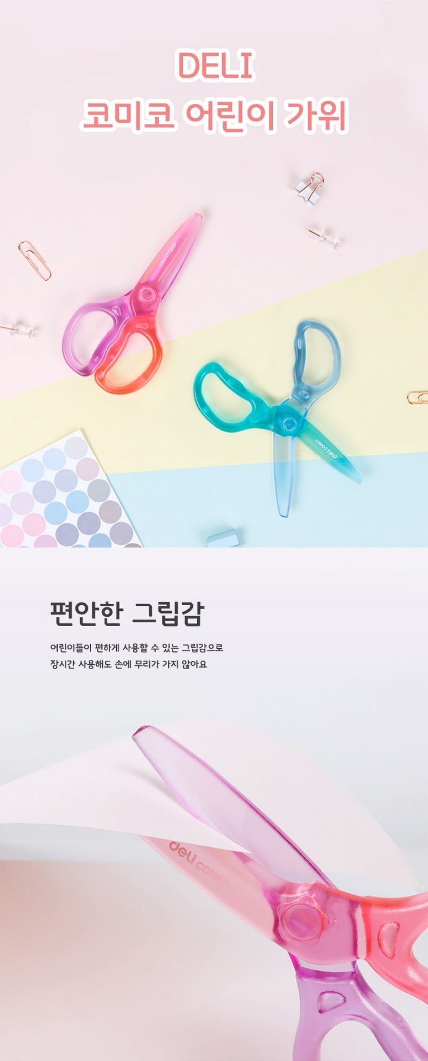• 델리 플라스틱 안전가위 코미코 어린이 가위 랜덤색상