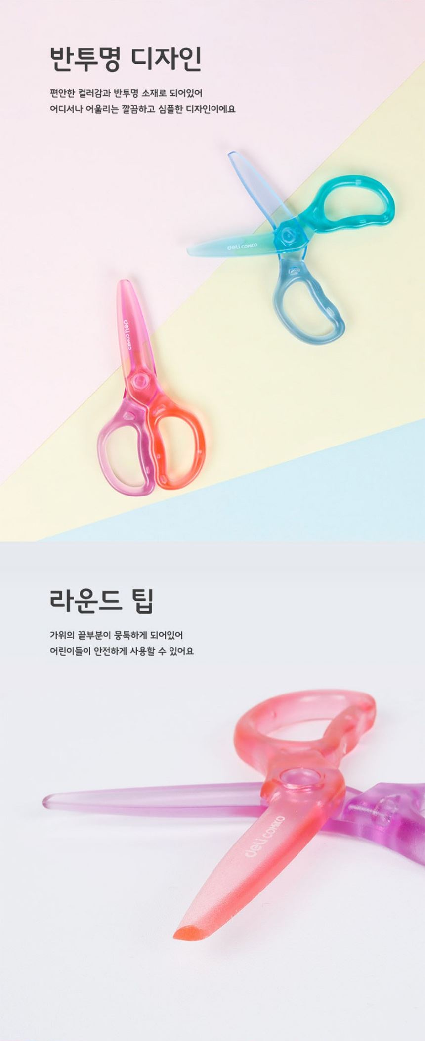 델리 플라스틱 안전가위 코미코 어린이 가위 랜덤색상 / 설래임 / 디비디비 / 구매하기 / 특가할인