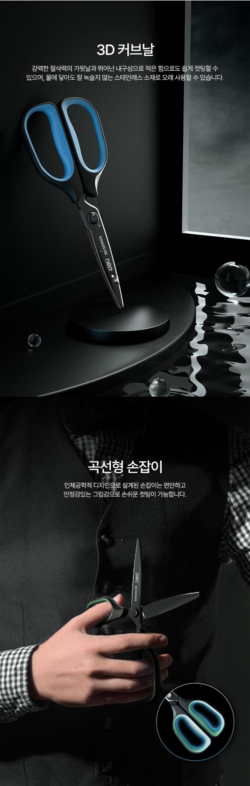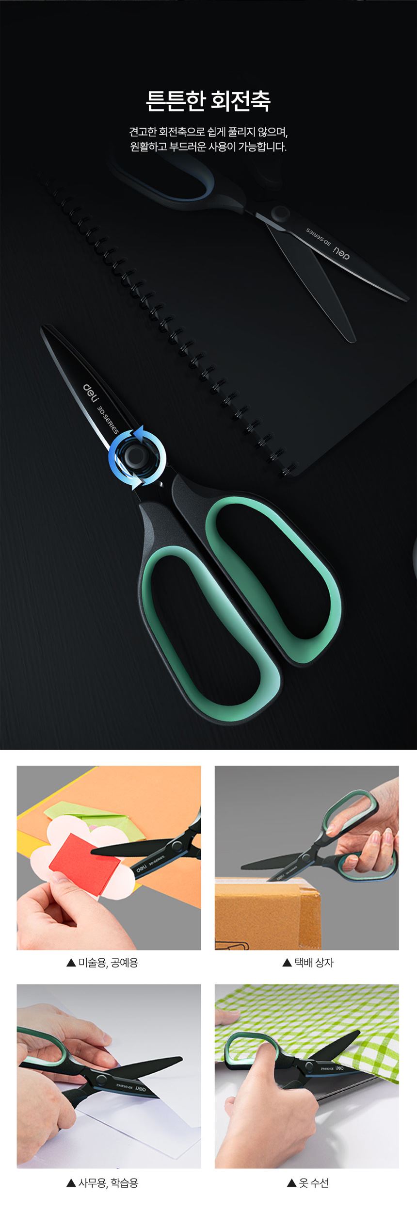 • 델리 라운드팁 블랙 칼날 사무용 가위
