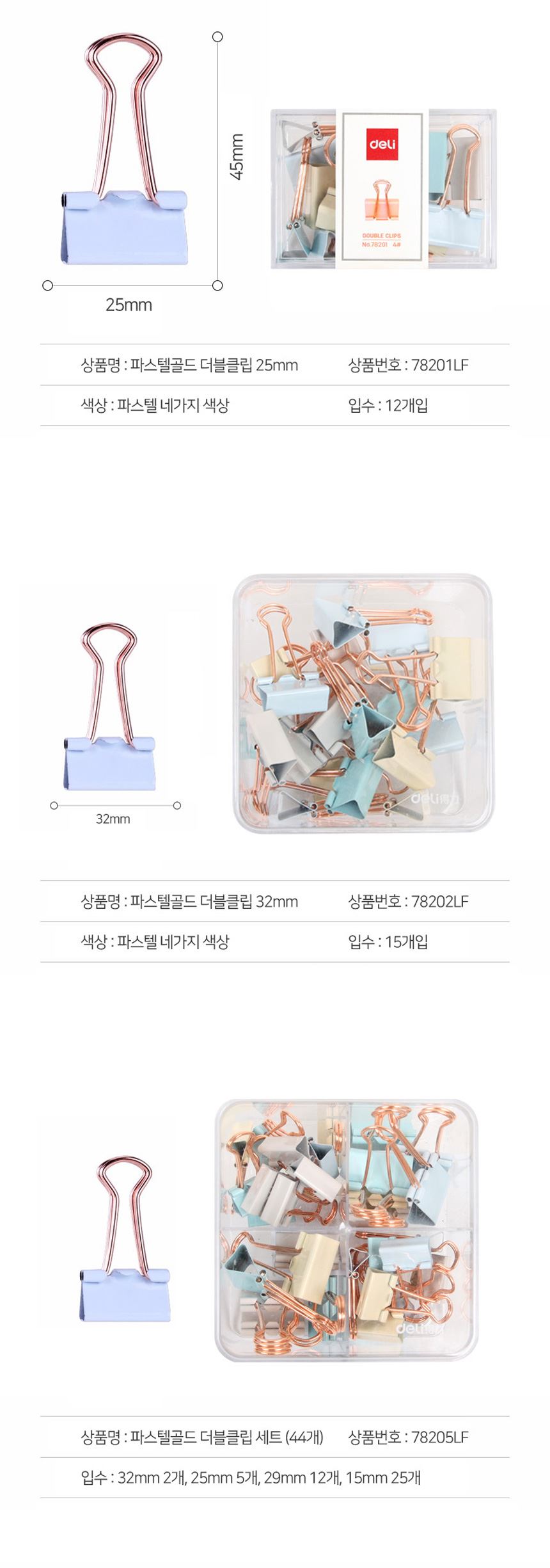 델리 사무용 학용 파스텔 골드 더블클립 혼합색상 / 설래임 / 디비디비 / 구매하기 / 특가할인