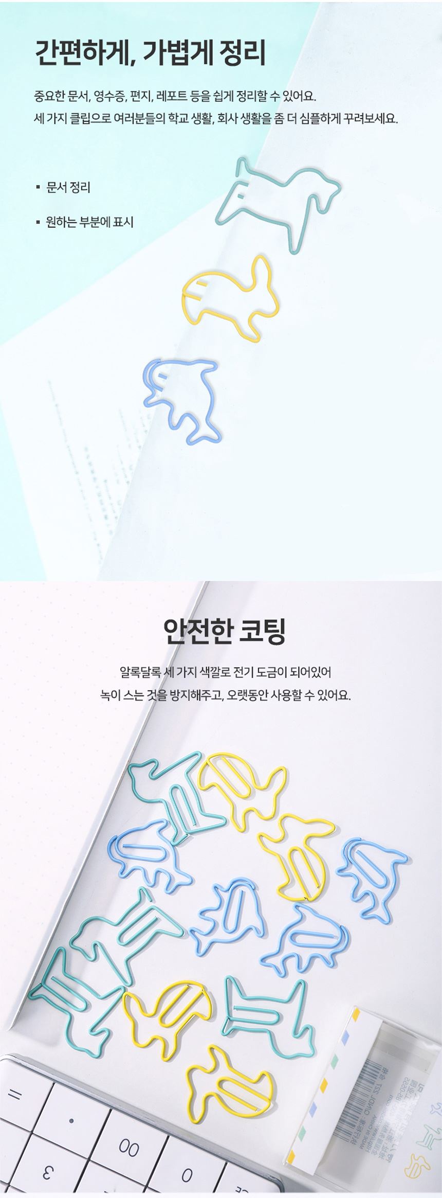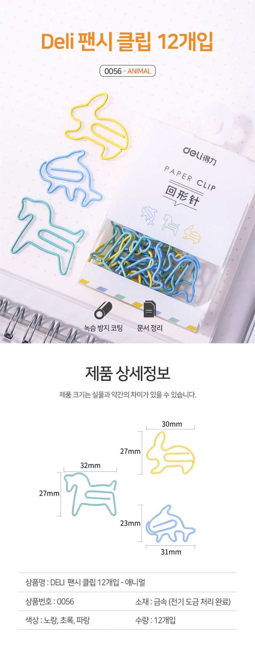 • 델리 모양클립 칼라 애니멀 팬시 클립 12개입