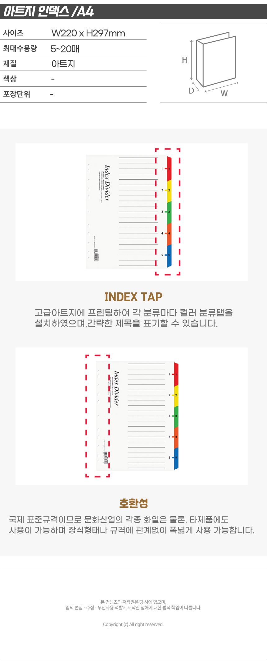 품명 아트지 인덱스