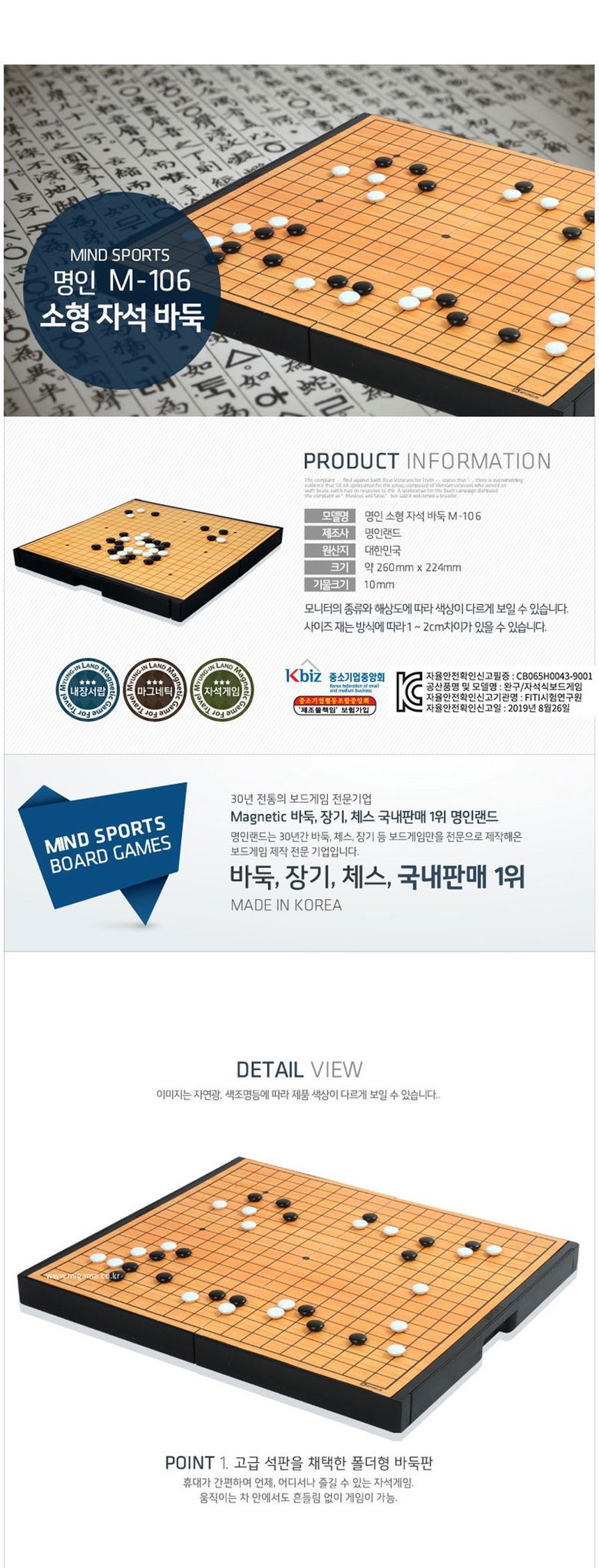 • 명인 접이식 소형 자석 바둑 M-106