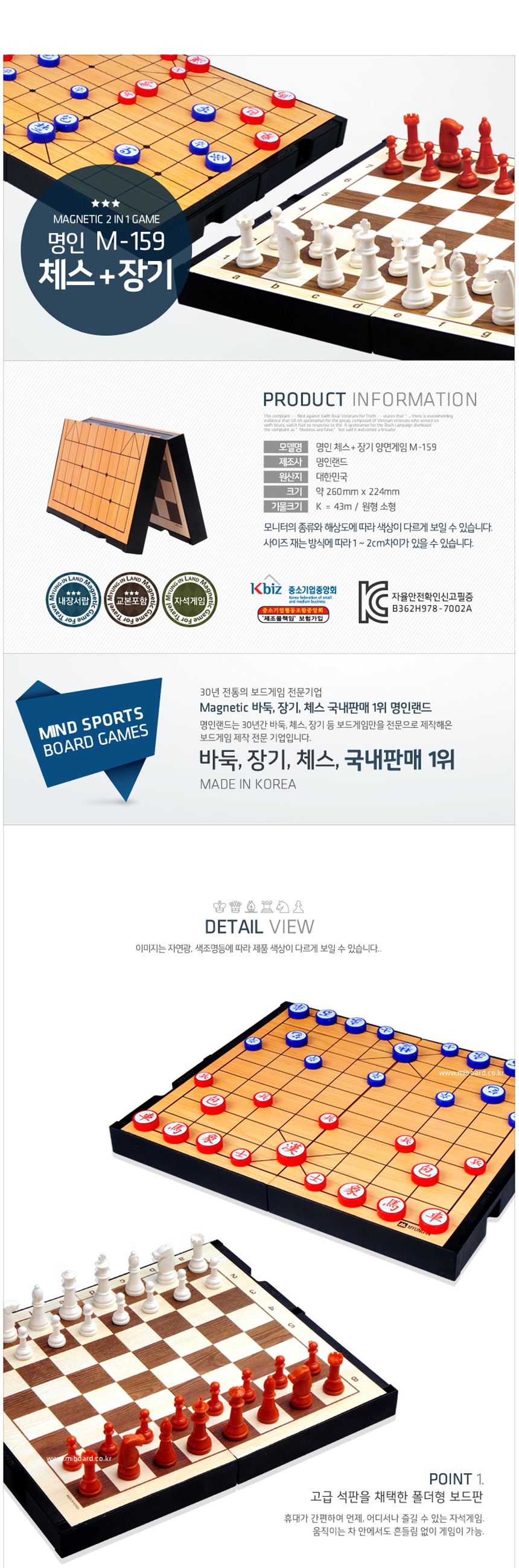 명인 접이식 자석 체스+장기 양면게임 M-159