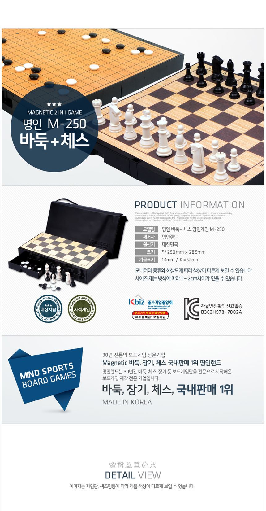 • 명인 접이식 자석 바둑+체스 양면게임 M-250