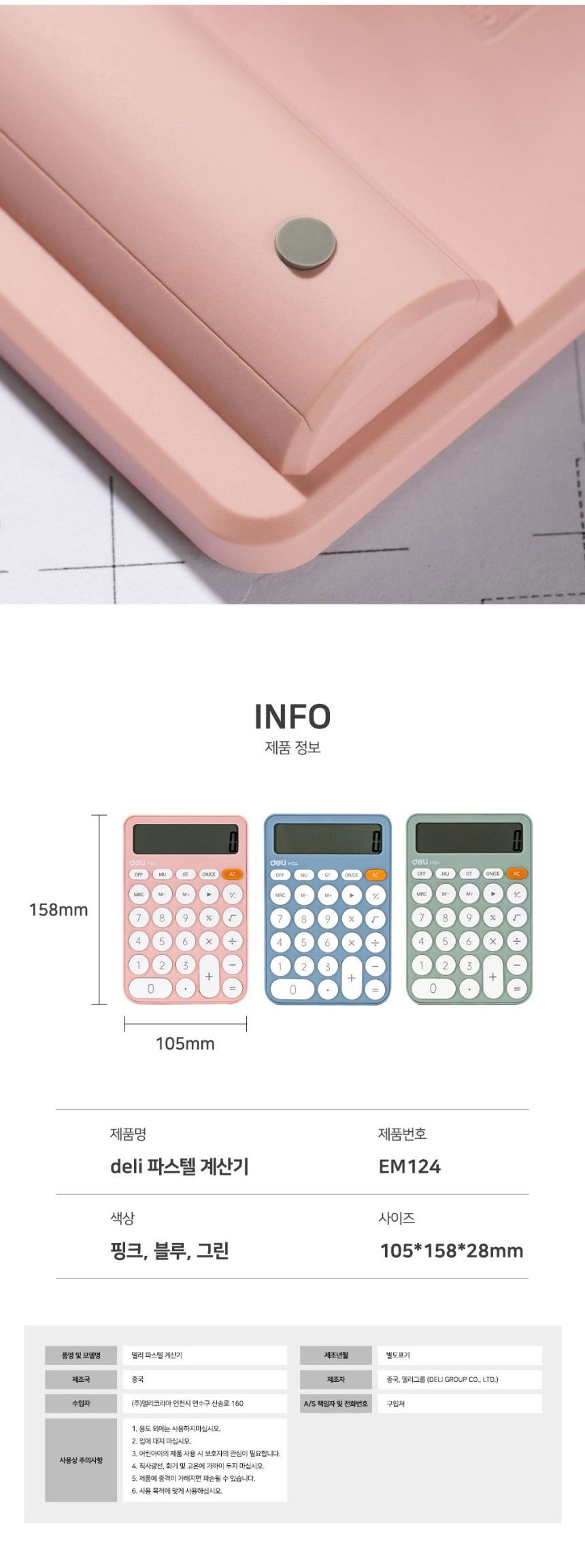 델리 업소용 업무용 12단 파스텔 계산기 EM124 / 설래임 / 디비디비 / 구매하기 / 특가할인