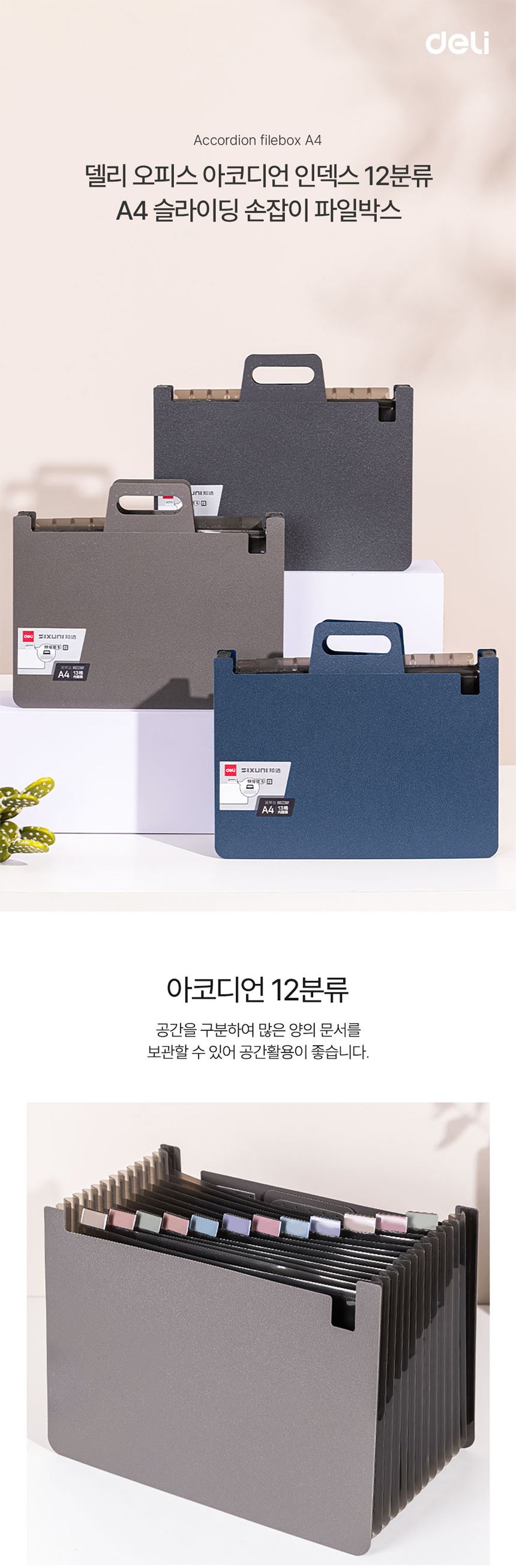 • 델리 접이식 스탠드형 도큐먼트 12분류 A4 슬라이딩 손잡이 파일박스