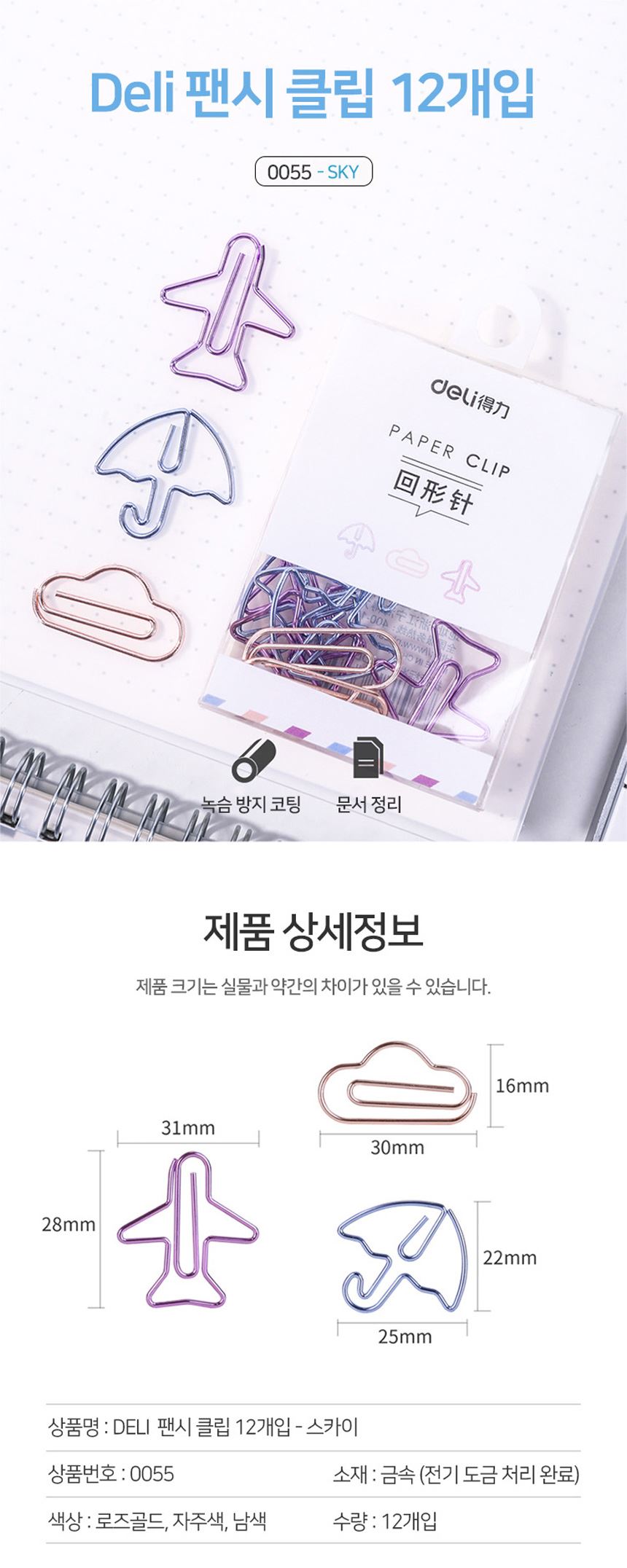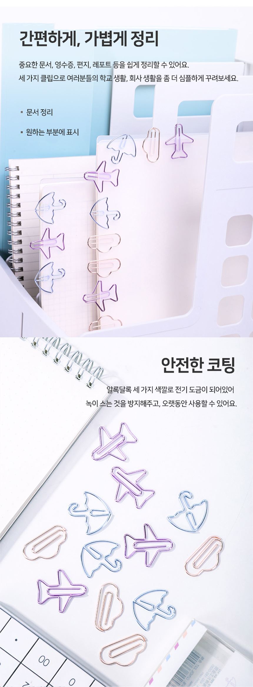 • 델리 모양클립 칼라 스카이 팬시 클립 12개입
