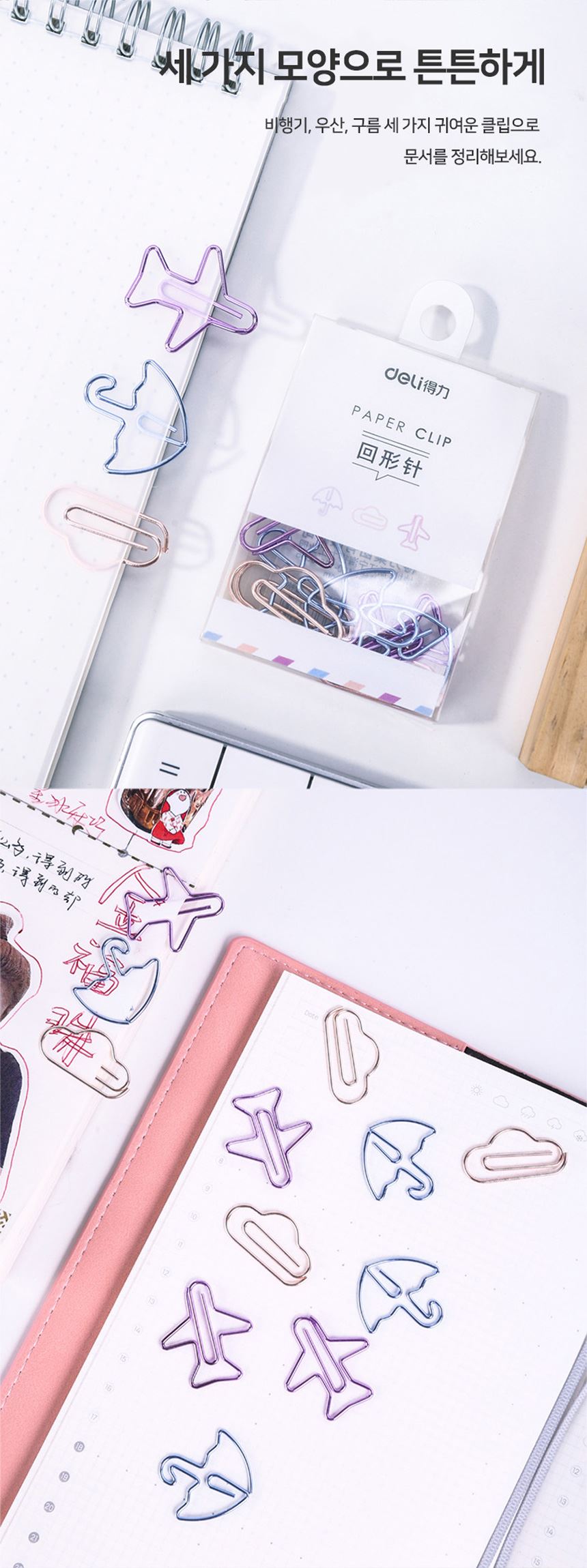 델리 모양클립 칼라 스카이 팬시 클립 12개입