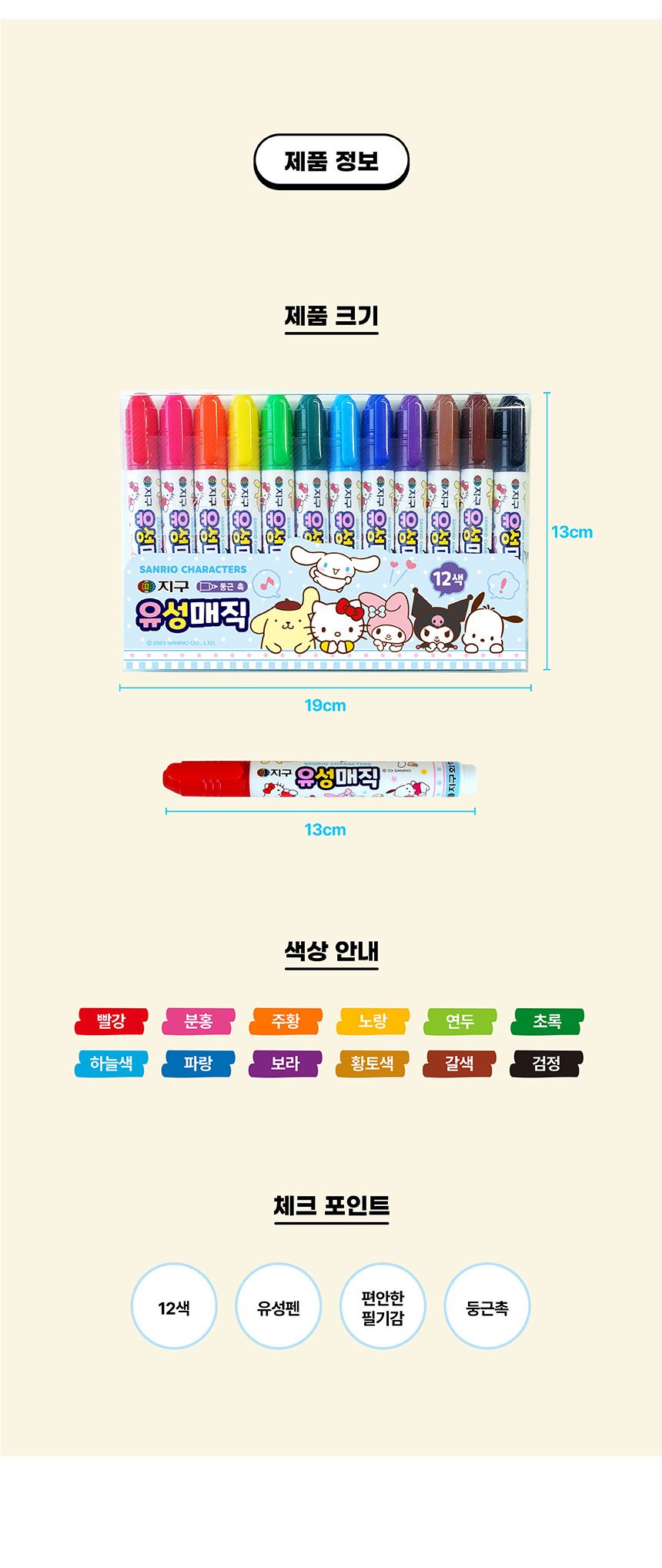 • 지구화학 산리오캐릭터즈 둥근닙 유성매직 12색