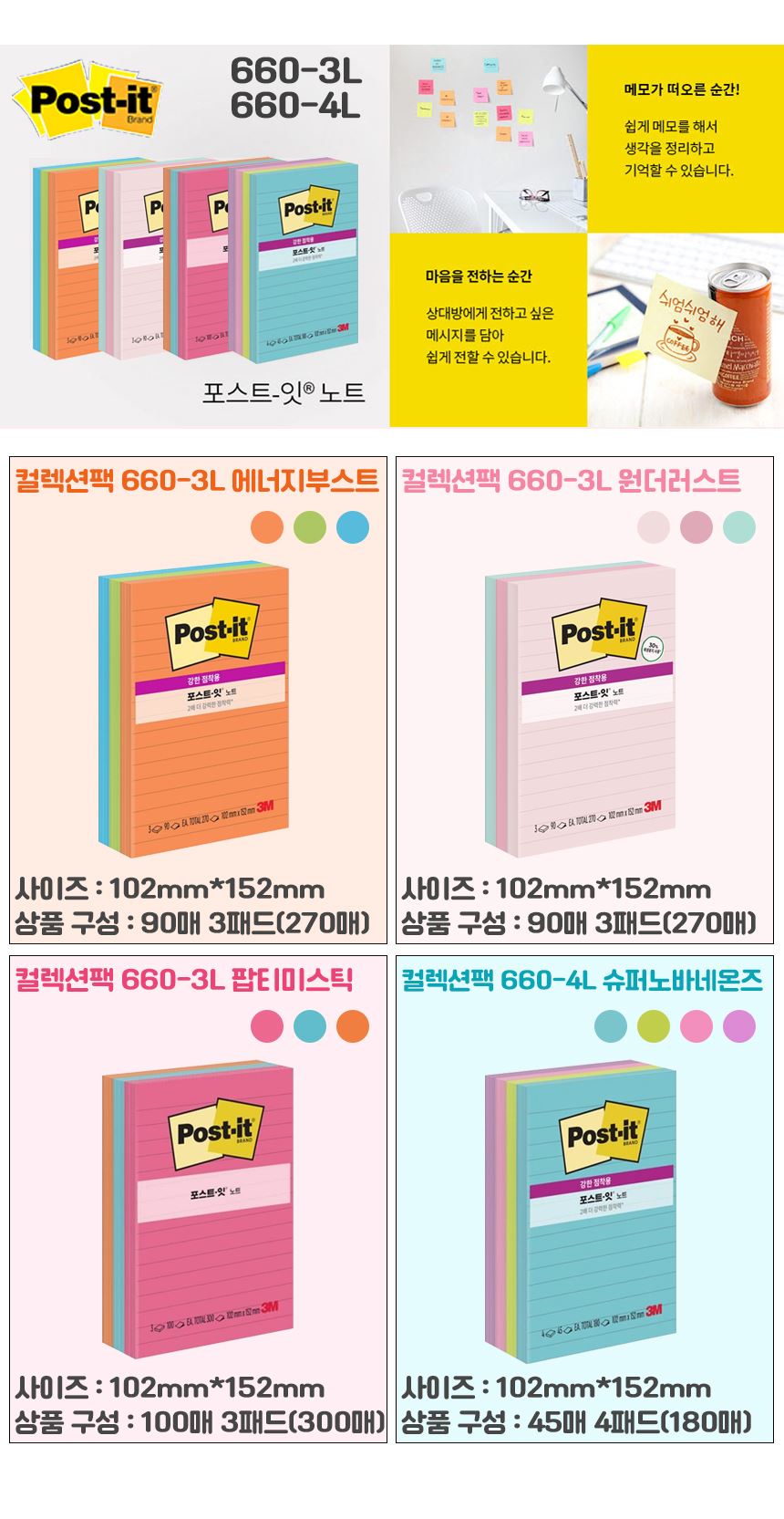 • 3M 포스트잇 라인 노트 컬렉션팩 660-3L 102x152mm