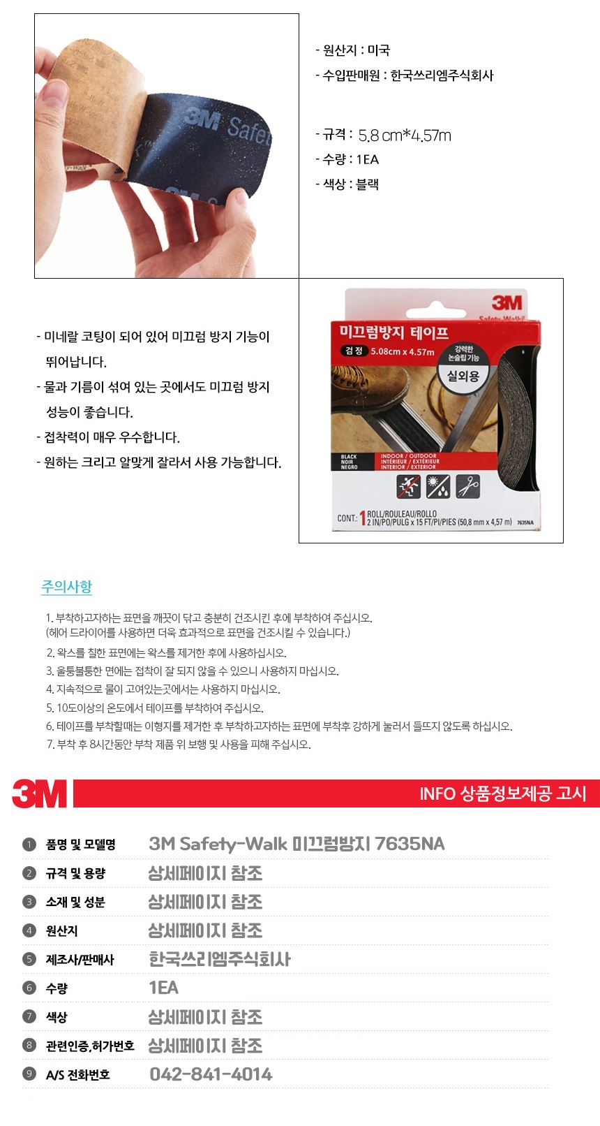 • 3M 실외용 논슬립 미끄럼방지 테이프 7635NA 50.8mmX4.57M 검정