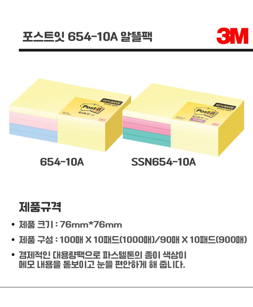 3M 포스트잇 대용량 일반 강한점착용 654-10A 알뜰팩 76x76mm