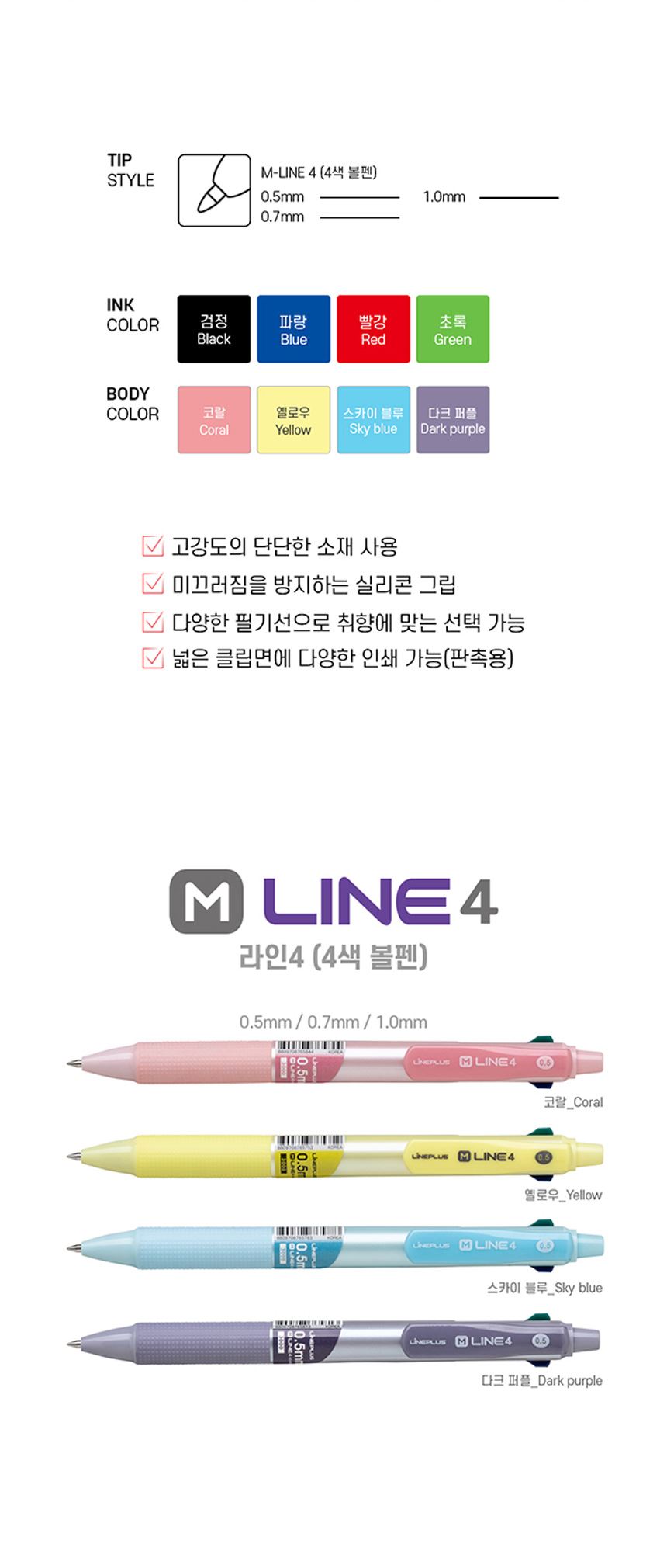 라인플러스 4색 멀티볼펜 라인4 / 설래임 / 디비디비 / 구매하기 / 특가할인