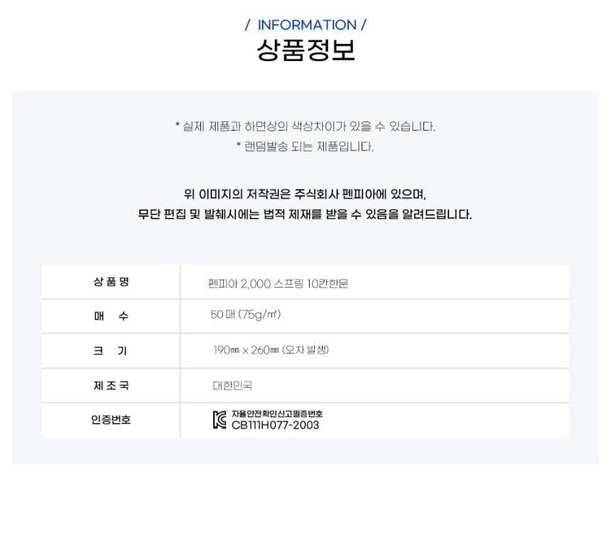 펜피아 중고생 2000 스프링 한문노트 10칸 랜덤1팩(10권)